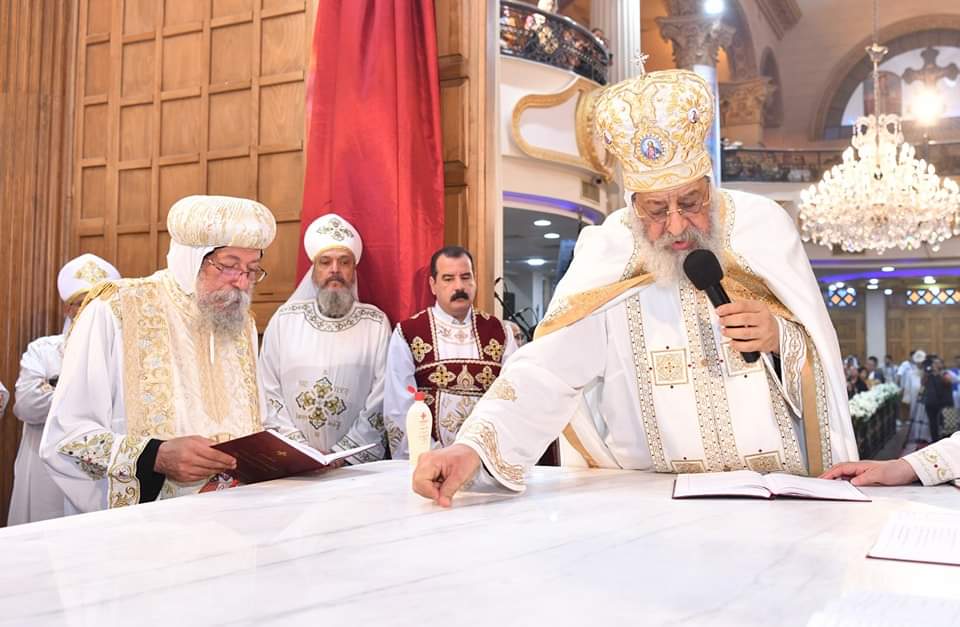 ووقع البابا تواضروس الثانى والآباء الأساقفة على وثيقة تدشين الكنيسة، ثم صلى برفقة الآباء المشاركون القداس الإلهي.