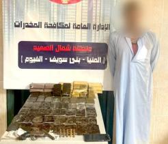 وتم ضبط (عنصر إجرامي - له معلومات جنائية) بدائرة مركز شرطة مغاغا بمحافظة المنيا، وبحوزته (9 كيلو جرام لمخدر الحشيش - فرد خرطوش وعدد من الطلقات)، وتقدر القيمة المالية للمواد المخدرة المضبوطة بحوالي (2.22 مليون جنيه) ، وتم اتخاذ الإجراءات القانونية وجاري العرض على النيابة العامة.