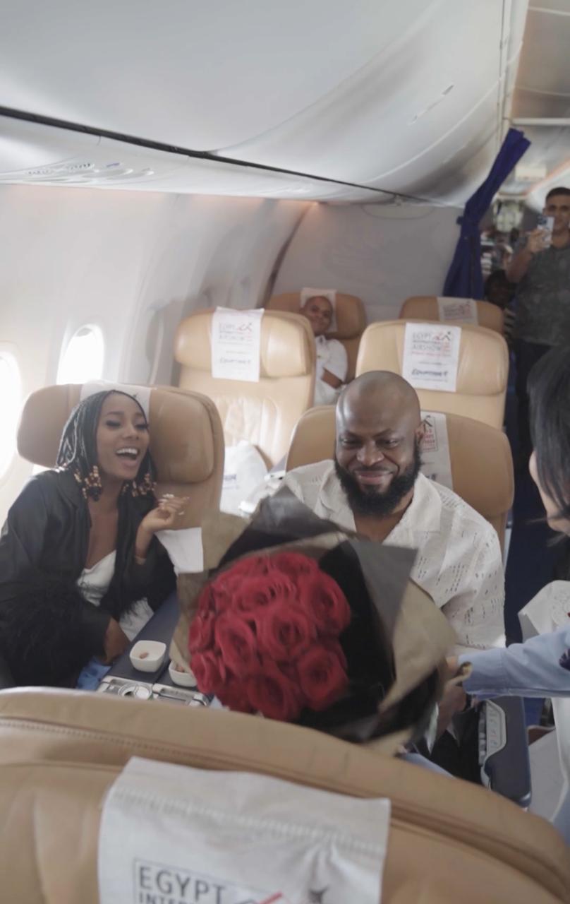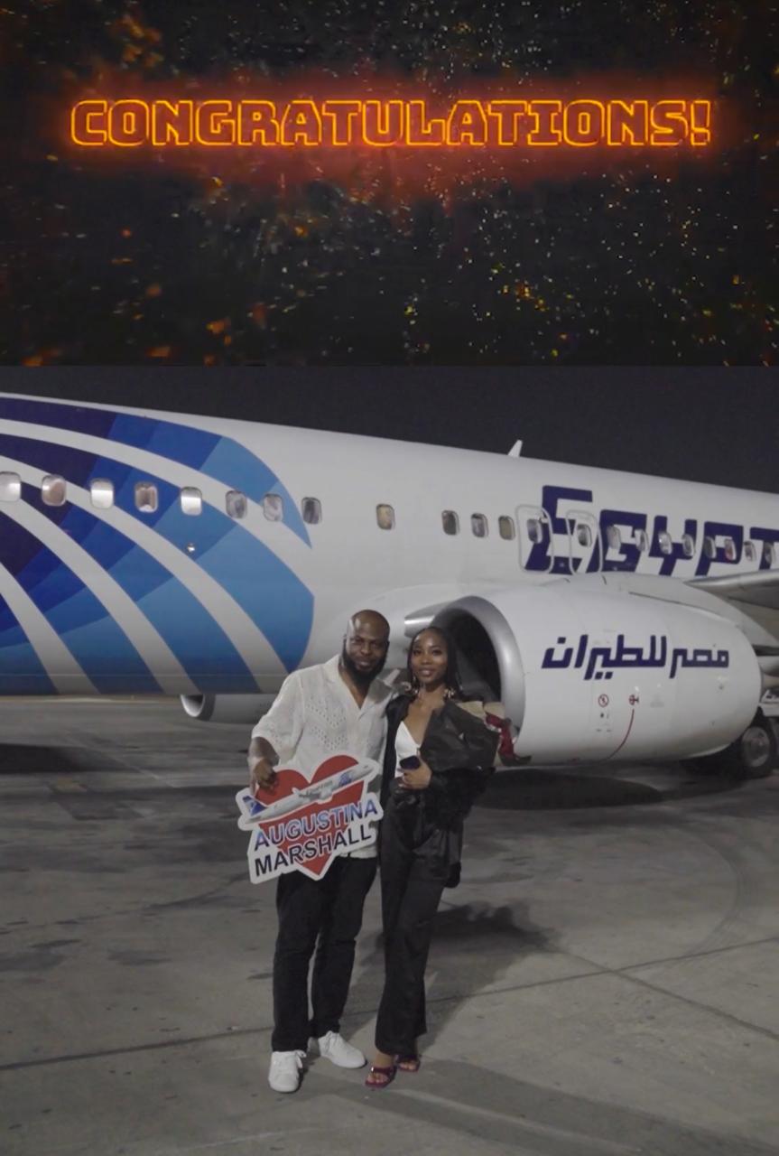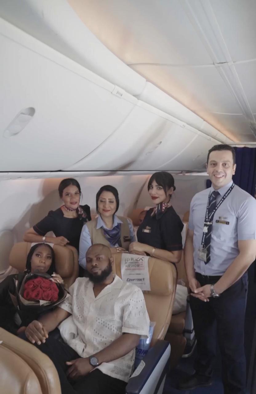مصر للطيران تحقق أمنية راكب نيجيري وتحتفل معه بطلب الزواج من حبيبته