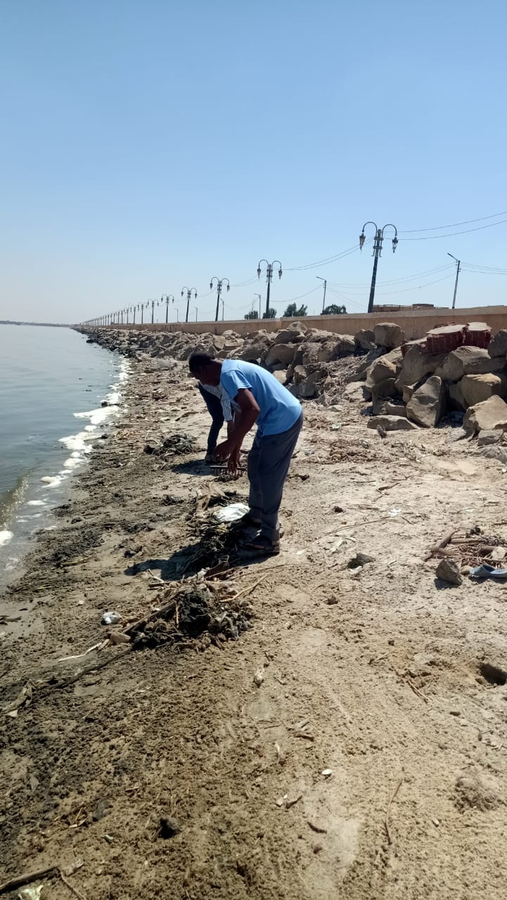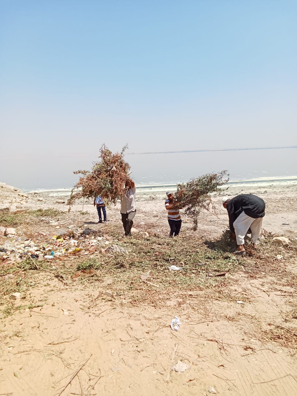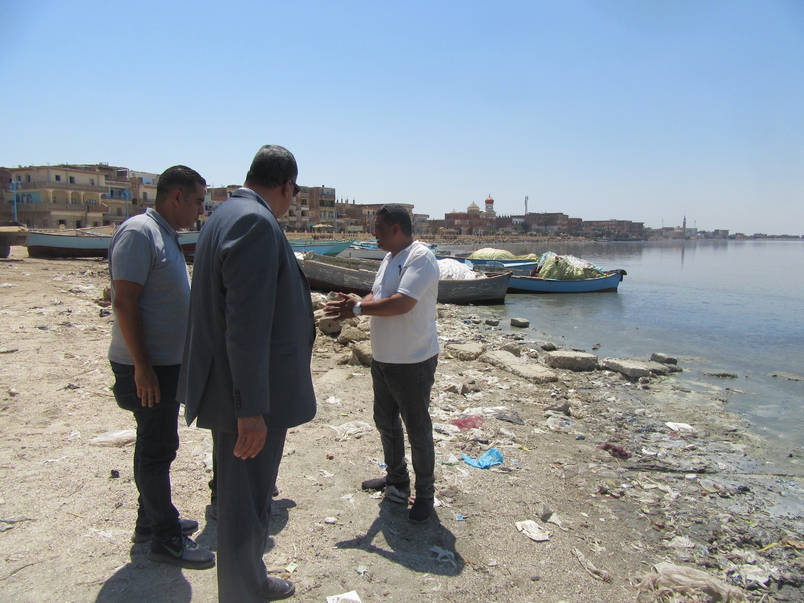 البيئة تتابع إجراءات رفع 300 طن مخلفات من شاطئ بحيرة قارون (صور)