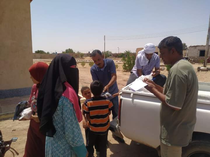 توزيع قافلة غذائية على أهالي قرى الأربعين بالوادي الجديد