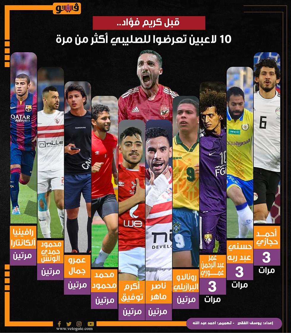 قبل كريم فؤاد.. 10 لاعبين تعرضوا للصليبي أكثر من مرة (إنفوجراف) الأحد 11/أغسطس/2024 - 10:14 م 8/11/2024 10:14:39 PM يوسف الفقي شارك طباعة 18 حجم الخط شارك طباعة كريم فؤاد إصابة كريم فؤاد إصابة كريم فؤاد بقطع في الصليبي الأهلي النادي الأهلي