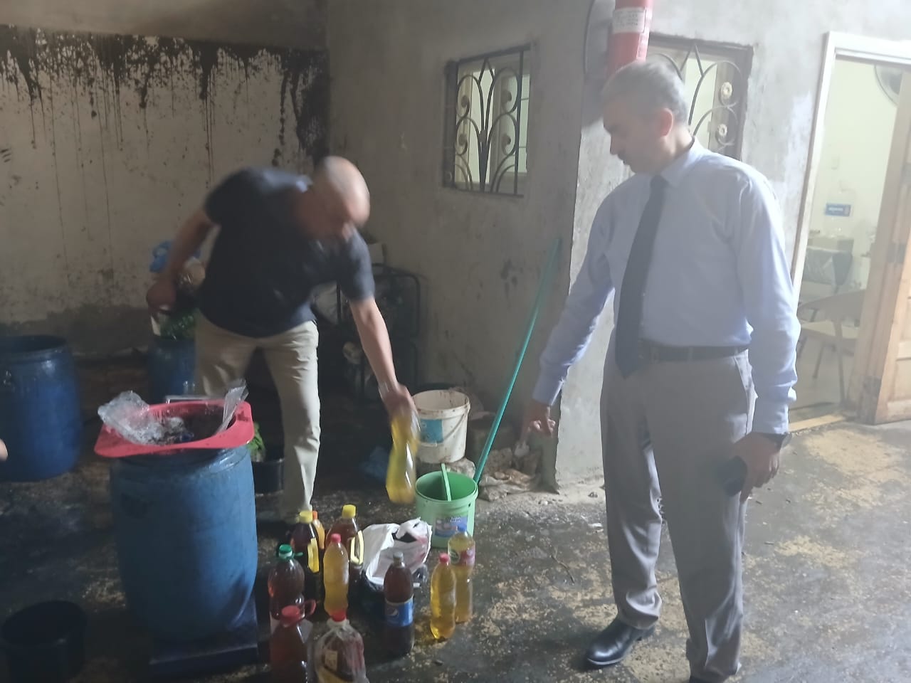 وجرى ضبط مصنع لتجميع زيوت الطعام المستهلك وإعادة معالجته بالمواد الكيماوية والتصفية لإعادة تدويره واستخدامه