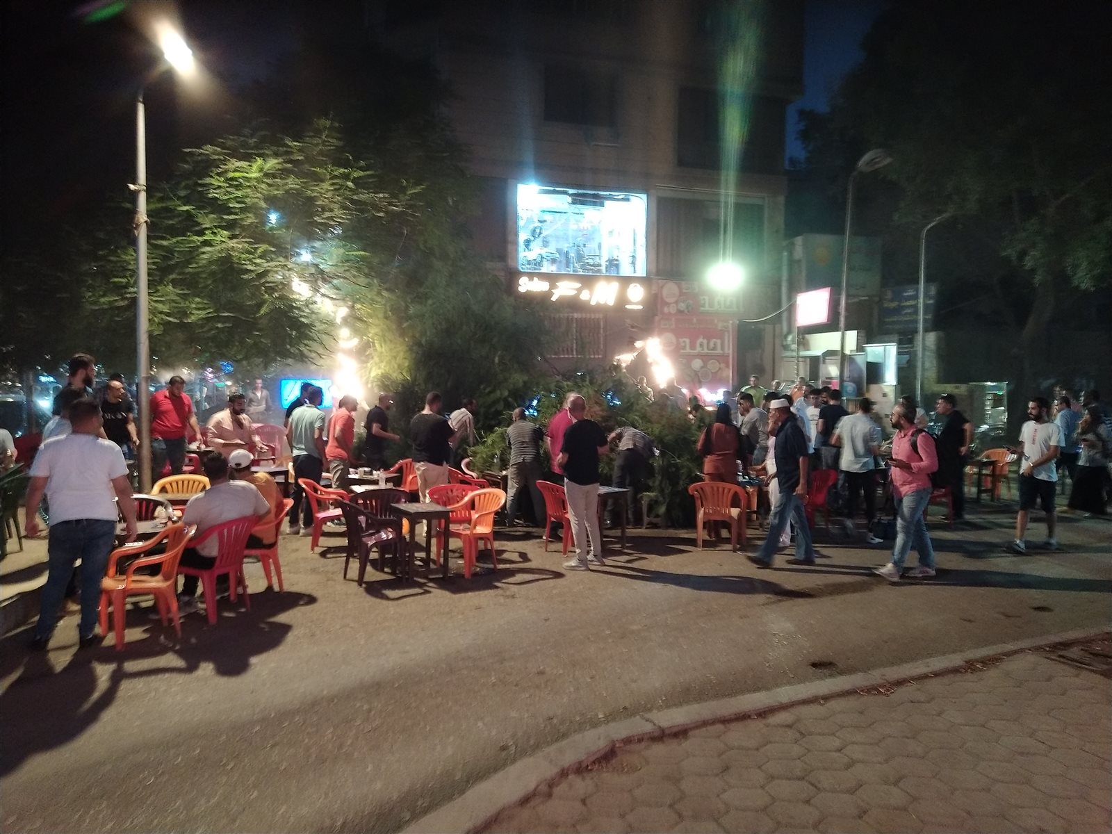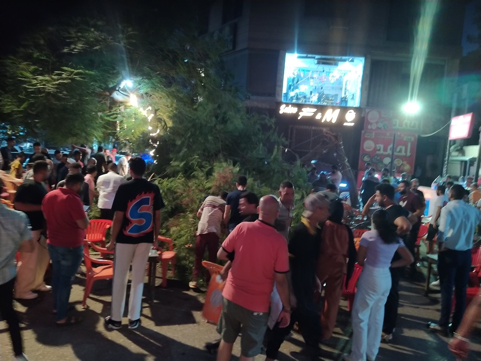 وقام رواد المقهى بتنظيف المكان وقص وإزالة آثار السقوط.