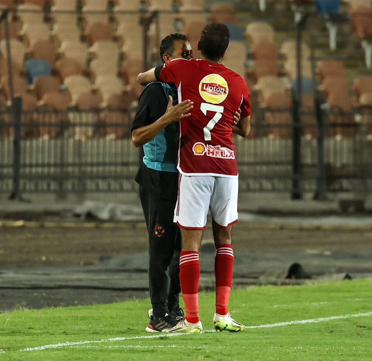 احتفال خاص بين كهربا وسامي قمصان بعد تقدم الأهلي أمام زد (فيديو)
