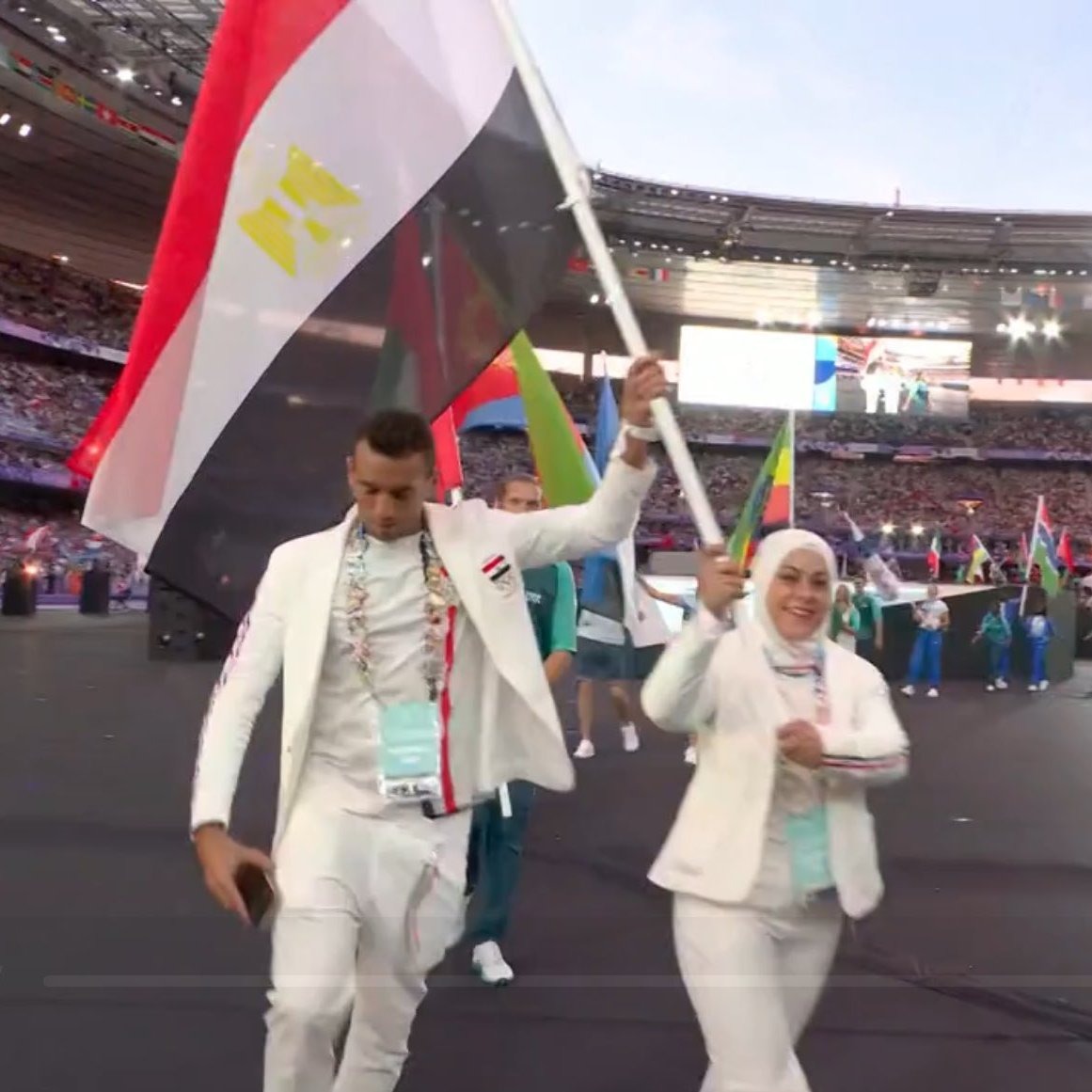 حاملين علم مصر، أحمد الجندي وسارة سمير يدخلان حفل ختام أولمبياد باريس 2024