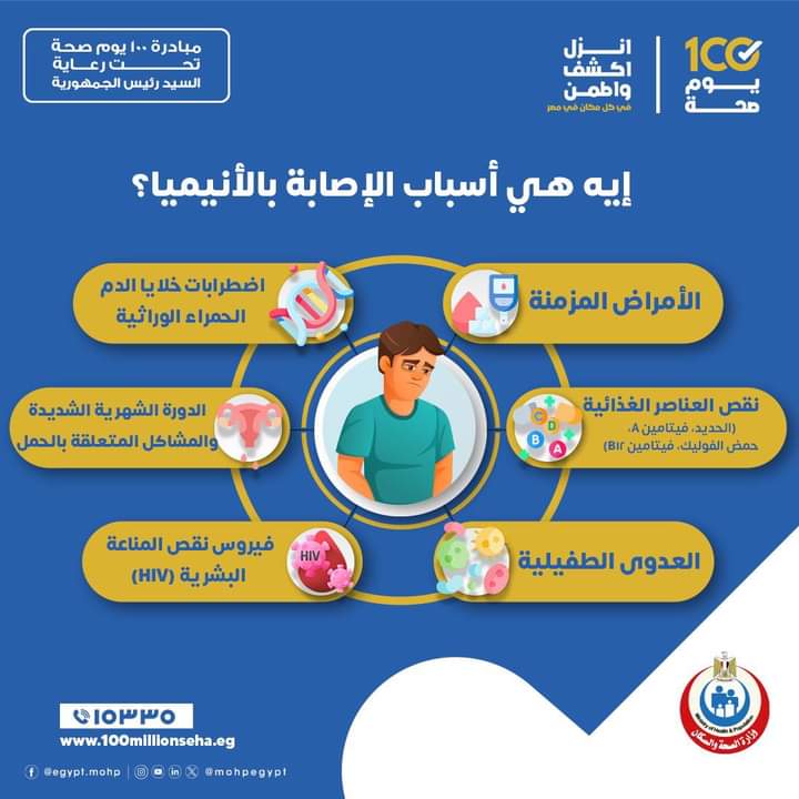 وكشفت وزارة الصحة عن أهم أسباب الإصابة بالأنيميا منها: