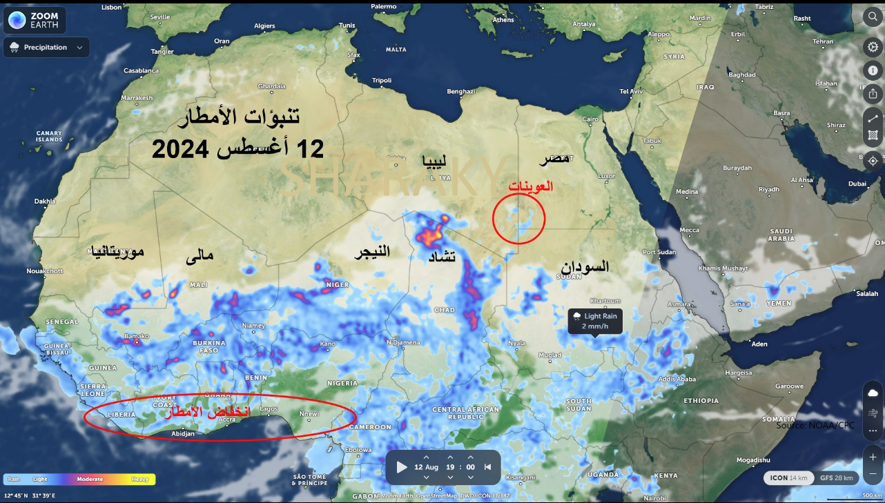 وتابع شراقي: "وبالتالي هذه الأمطار ليست سيول فجائية كما تعودناها، ولكنها جزء أساسي من حزام الأمطار بدءً من جنوب الخليج العربي حتى المحيط الأطلنطي، وحدث له إزاحة إلى الشمال ليشمل جنوب الجزيرة العربية وحلايب وشلاتين وبحيرة ناصر وأبو سمبل وجبل العوينات (برج المياه القديم) وجنوب ليبيا وشمال كل من تشاد والنيجر ومالي وجنوب موريتانيا، وفي نفس الوقت انخفضت الأمطار عن المتوسط على سواحل غرب افريقيا المعروفة بالأمطار الغزيرة".