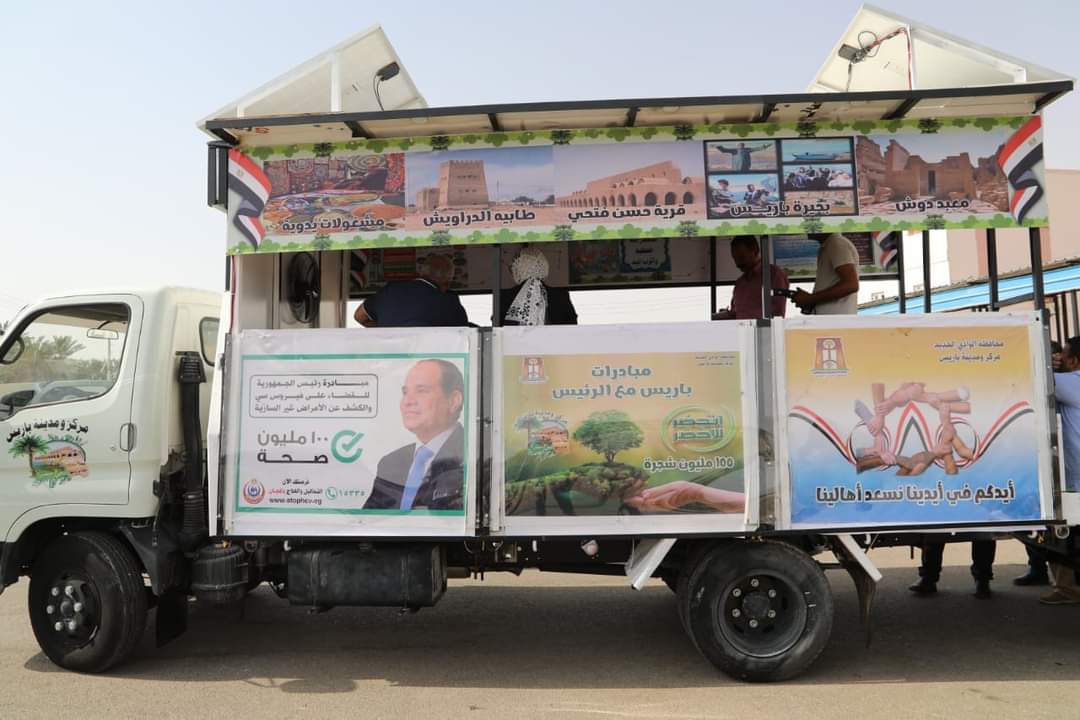 تفقّد اللواء دكتور محمد الزملوط محافظ الوادي الجديد، والسيدة حنان مجدي نائب المحافظ، صباح اليوم، تجربة تنفيذ سيارة لنقل الركاب تابعة للوحدة المحلية بمركز باريس، يرافقه عبد الناصر صالح رئيس المركز.