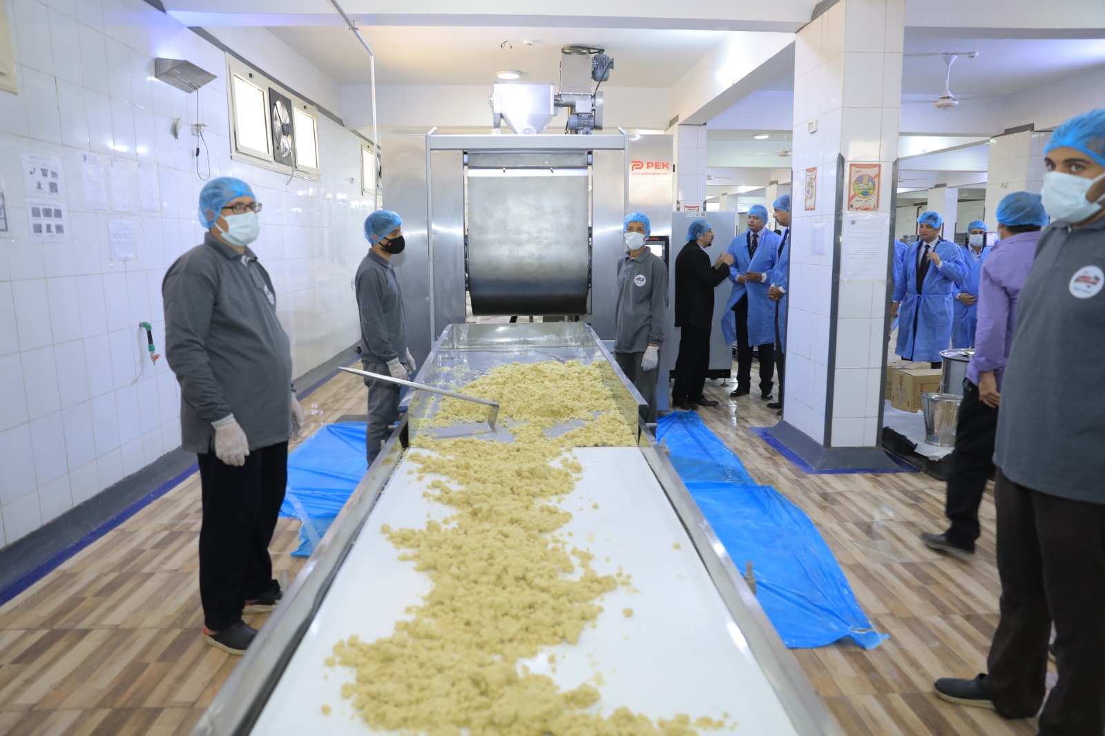 واستهل المحافظ جولته بتفقد مصنع المواد الغذائية "سيتي فودز" لإنتاج البسكويت، حيث تفقد خطوط الإنتاج بالمصنع، واستمع إلى شرح مفصل عنه، والذي يقع على مساحة 2000 متر مربع، ويضم 90 عاملا، ويساهم فى إنتاج التغذية المدرسية بطاقة إنتاجية 25 طن يوميًا، بمعدل مليون وجبة مدرسية باليوم، ويعتبر أول مصنع على مستوى الصعيد المؤهل من الهيئة القومية لسلامة الغذاء وحاصل على الأيزو والمطابقة لأعلى المواصفات العالمية، وتم الانتهاء من تصميم وإنشاء خط انتاج جديد وسوف يتم افتتاحه نهاية شهر أكتوبر الجاري.