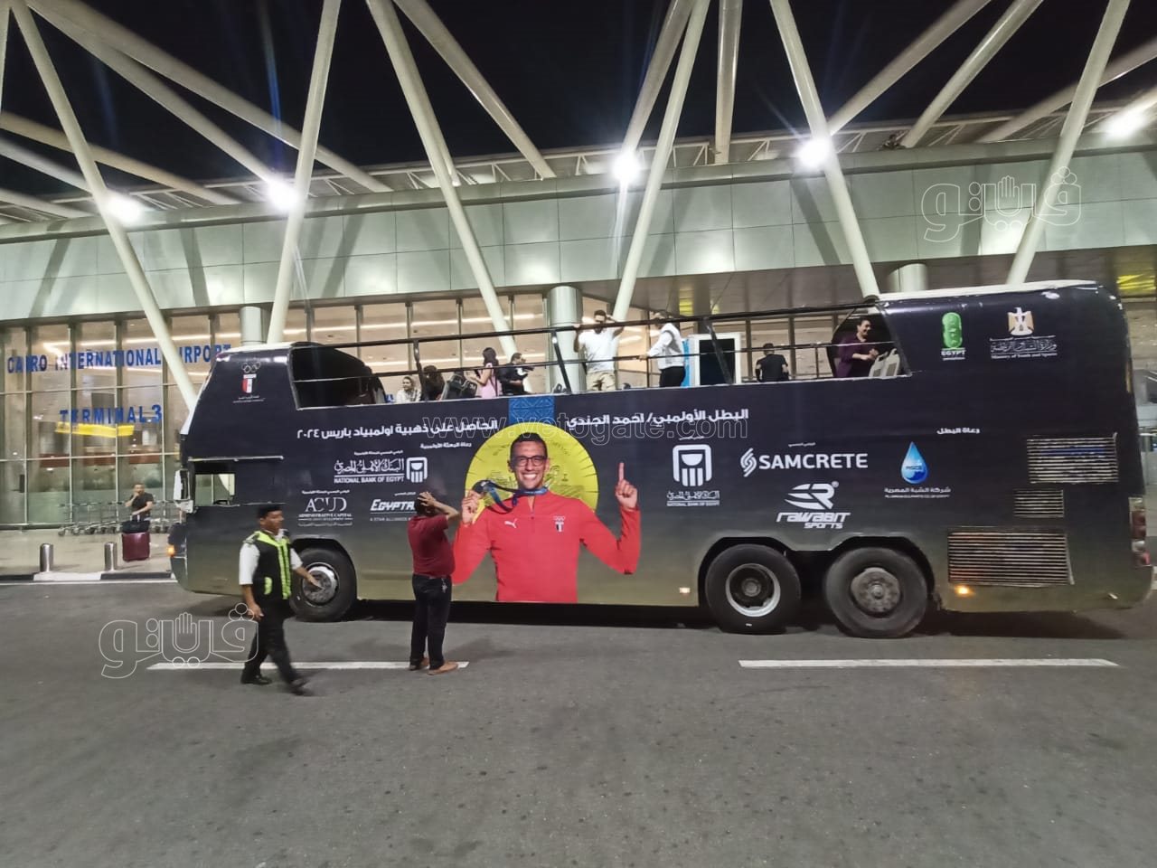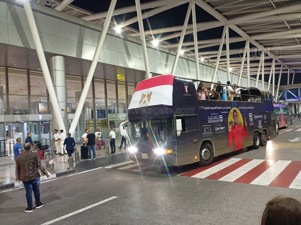 بالأتوبيس المكشوف، وزارة الرياضة تحتفل بأبطال أولمبياد باريس في مطار القاهرة (صور)