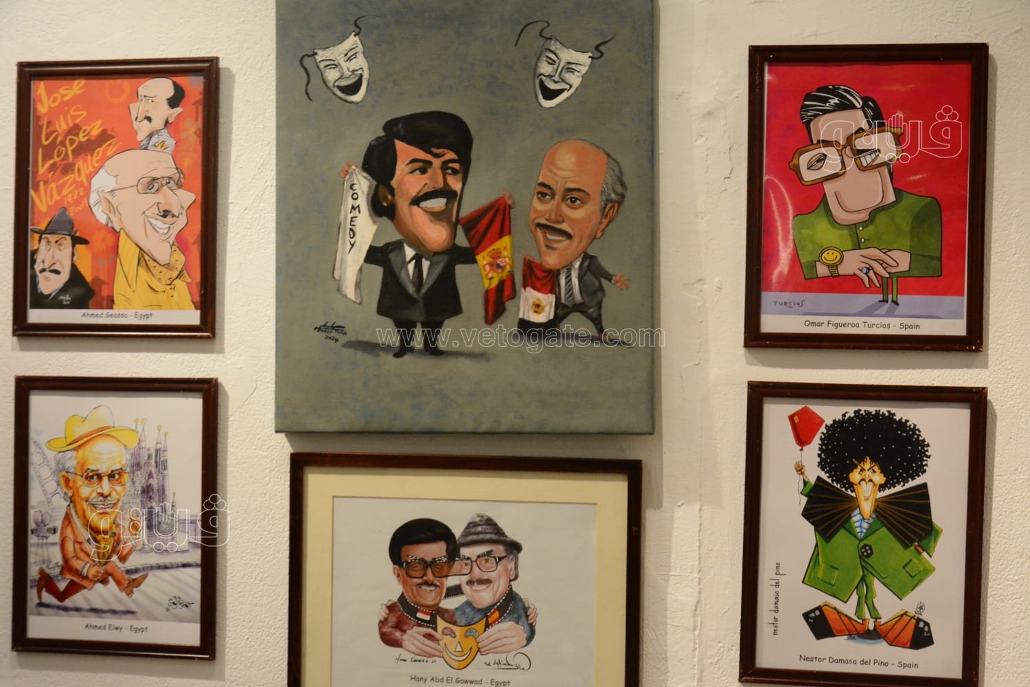 كما تتصدر الملتقى لوحات كاريكاتيرية تجمع بين النجم سمير غانم، والنجم الإسباني الكوميدي الشهير "خوسيه لويس باثكيس"، بمناسبة اختيار إسبانيا ضيف شرف هذه الدورة.