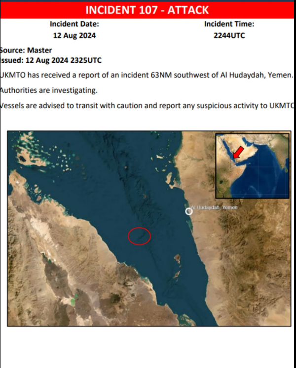 حرب غزة ، قالت هيئة عمليات التجارة البحرية البريطانية، اليوم الثلاثاء، إن قبطان سفينة أبلغ عن وقوع انفجار على مسافة منها على بعد 63 ميلًا بحريًّا جنوب غربي الحديدة باليمن.