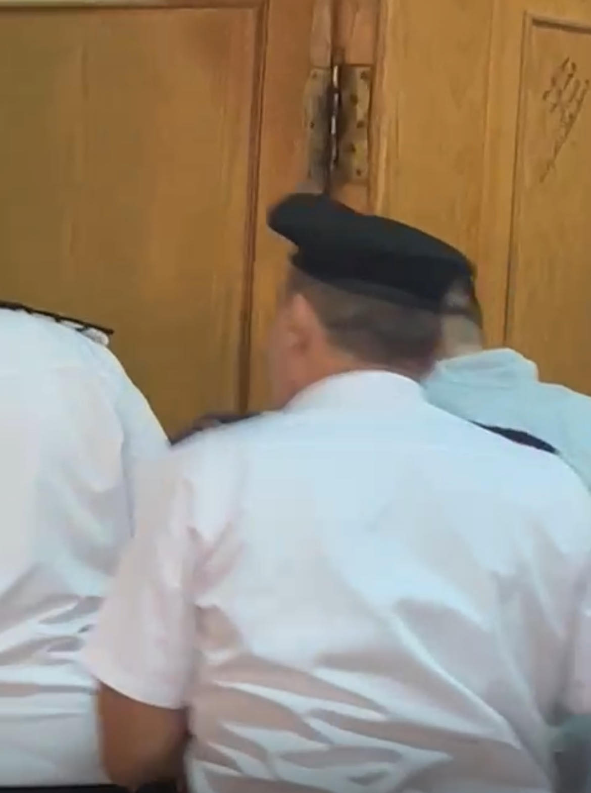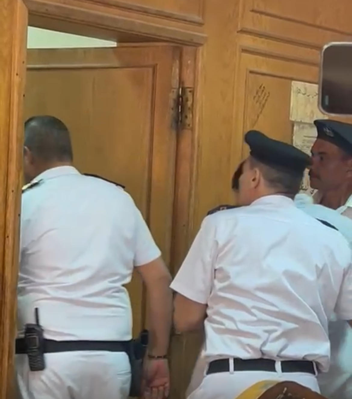 ووصل المتهم وسط حراسة أمنية مشددة وتم إيداعه قفص الاتهام.