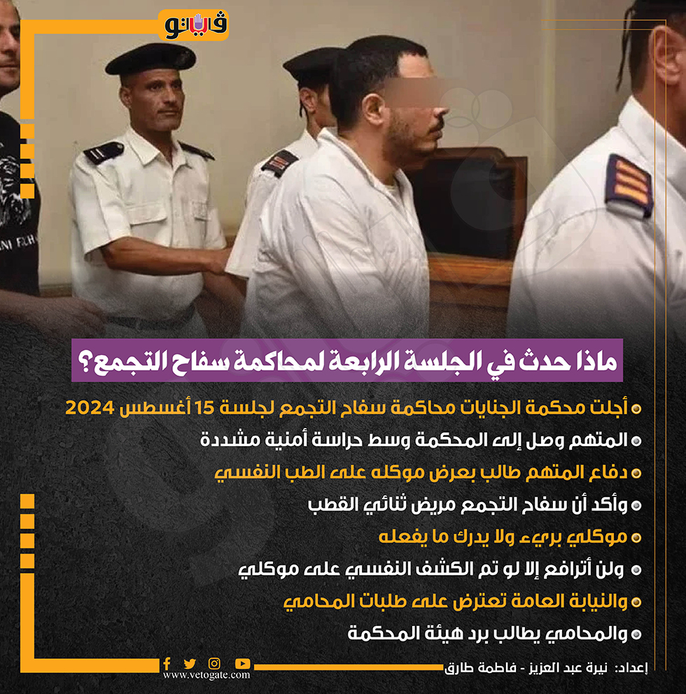 ماذا حدث في الجلسة الرابعة لمحاكمة سفاح التجمع (إنفو جراف) الثلاثاء 13/أغسطس/2024 - 11:16 م 8/13/2024 11:16:39 PM سفاح التجمع، فيتو نيرة عبد العزيز - فاطمة طارق شارك طباعة 18 حجم الخط شارك طباعة سفاح التجمع محاكمة سفاح التجمع النيابة العامة