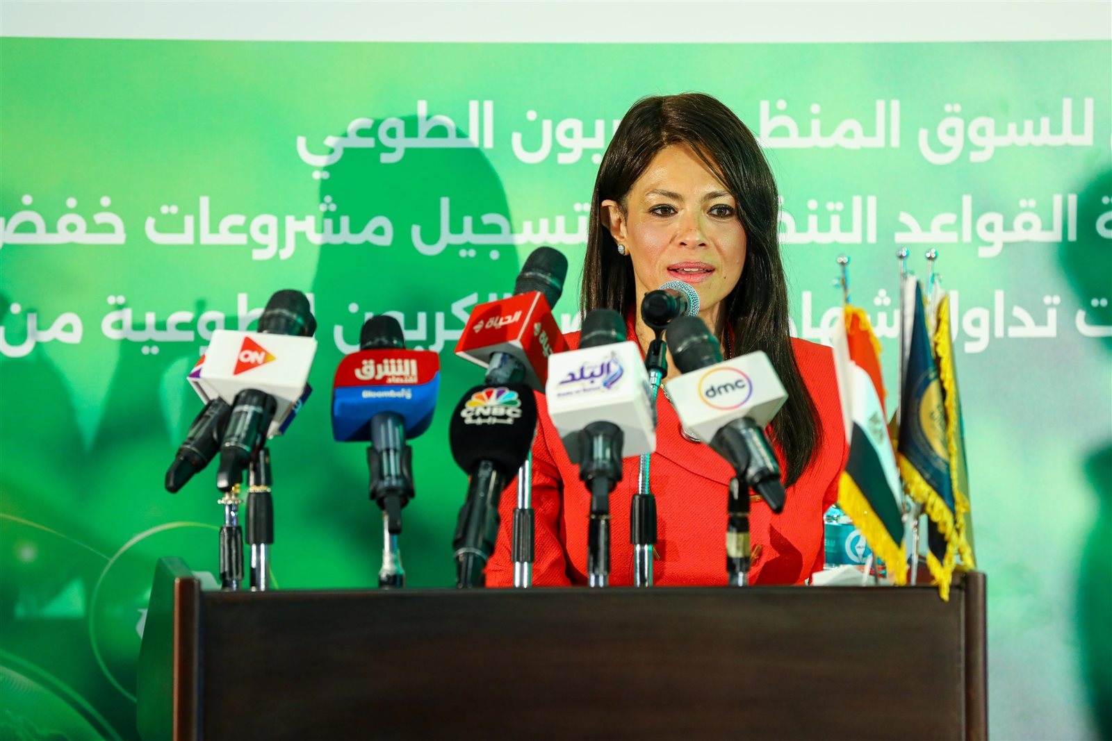 وأوضحت المشاط أن تدشين أول سوق طوعي لتداول شهادات خفض الكربون في مصر، يعد ثمرة للتعاون بين مختلف الأطراف ذات الصلة، بالإضافة إلى شركاء التنمية، حيث كان برنامج "تمويل سياسات التنمية" الذي نفذته الوزارة مع البنك الدولي، داعمًا لتدشين هذا السوق، من خلال تعزيز الإصلاحات الهيكلية، وإتاحة الدعم الفني لهيئة الرقابة المالية لاستصدار ثلاثة قرارات بشأن أسواق الكربون المحلية: (١) متطلبات التسجيل لأجهزة الاعتماد والتحقق، (٢) متطلبات التفويض للتسجيلات الخاصة لأرصدة الكربون ٬ (٣) متطلبات التفويض للتسجيلات الخاصة لأرصدة الكربون المتعلقة بالأمور التجارية. كما أكدت الاستمرار في تنفيذ برنامج تمويل سياسات التنمية مع البنك الدولي والشركاء الآخرين لتنفيذ الإصلاحات الهيكلية التي تعزز التحول الأخضر