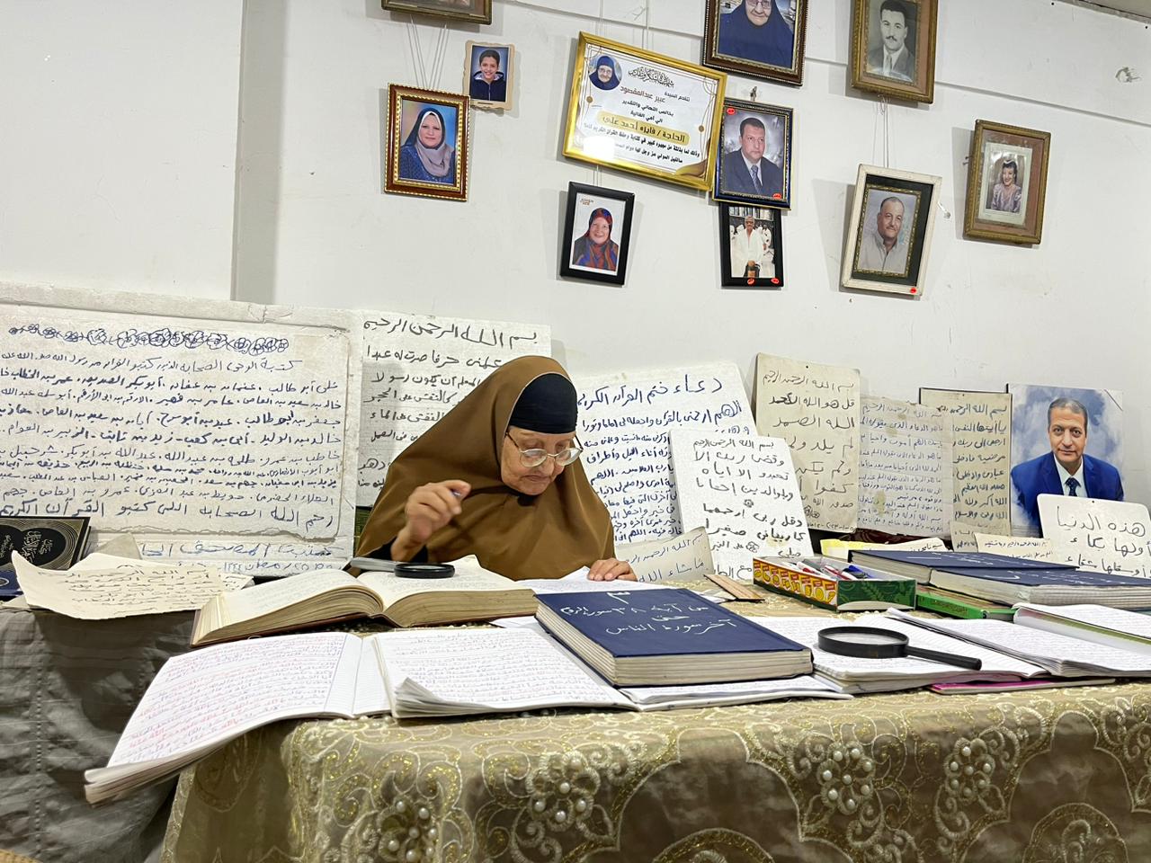 رغم تجاوزها الـ90 عاما، الحاجة فايزة كتبت القرآن الكريم كاملا في ثلاثة مجلدات بالبحيرة (فيديو)