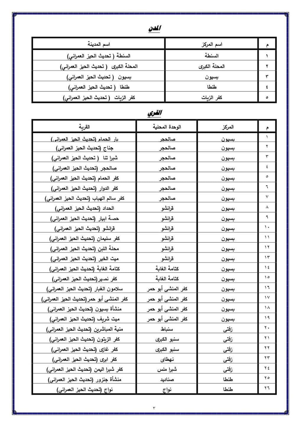 اعتمد اللواء أشرف الجندي محافظ الغربية الأحوزة العمرانية لـ5 مدن تابعة لمراكز ( السنطة،المحلة الكبرى، بسيون، طنطا،كفر الزيات و34 قرية و94 عزبة تابعة لمراكز ( طنطا، زفتى، كفر الزيات، بسيون ) .