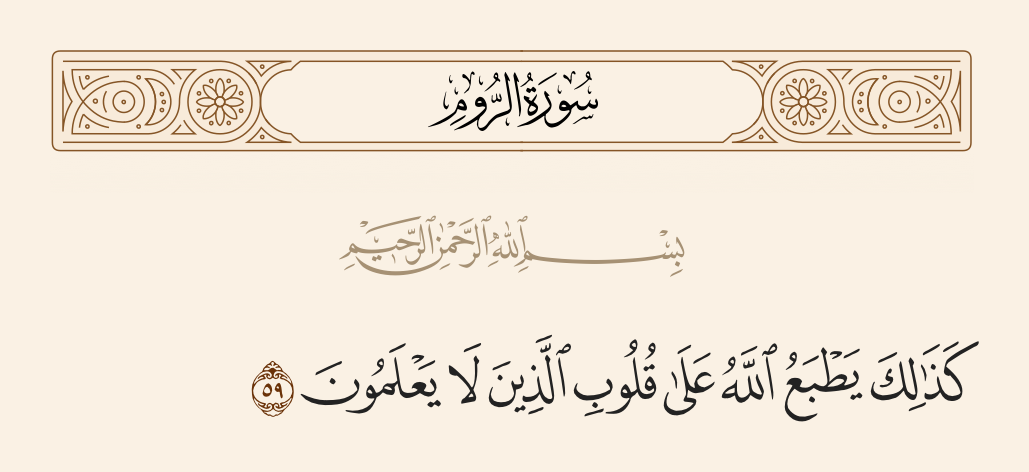 قال تعالى: «كَذَلِكَ يَطْبَعُ اللَّهُ عَلَى قُلُوبِ الَّذِينَ لَا يَعْلَمُونَ».