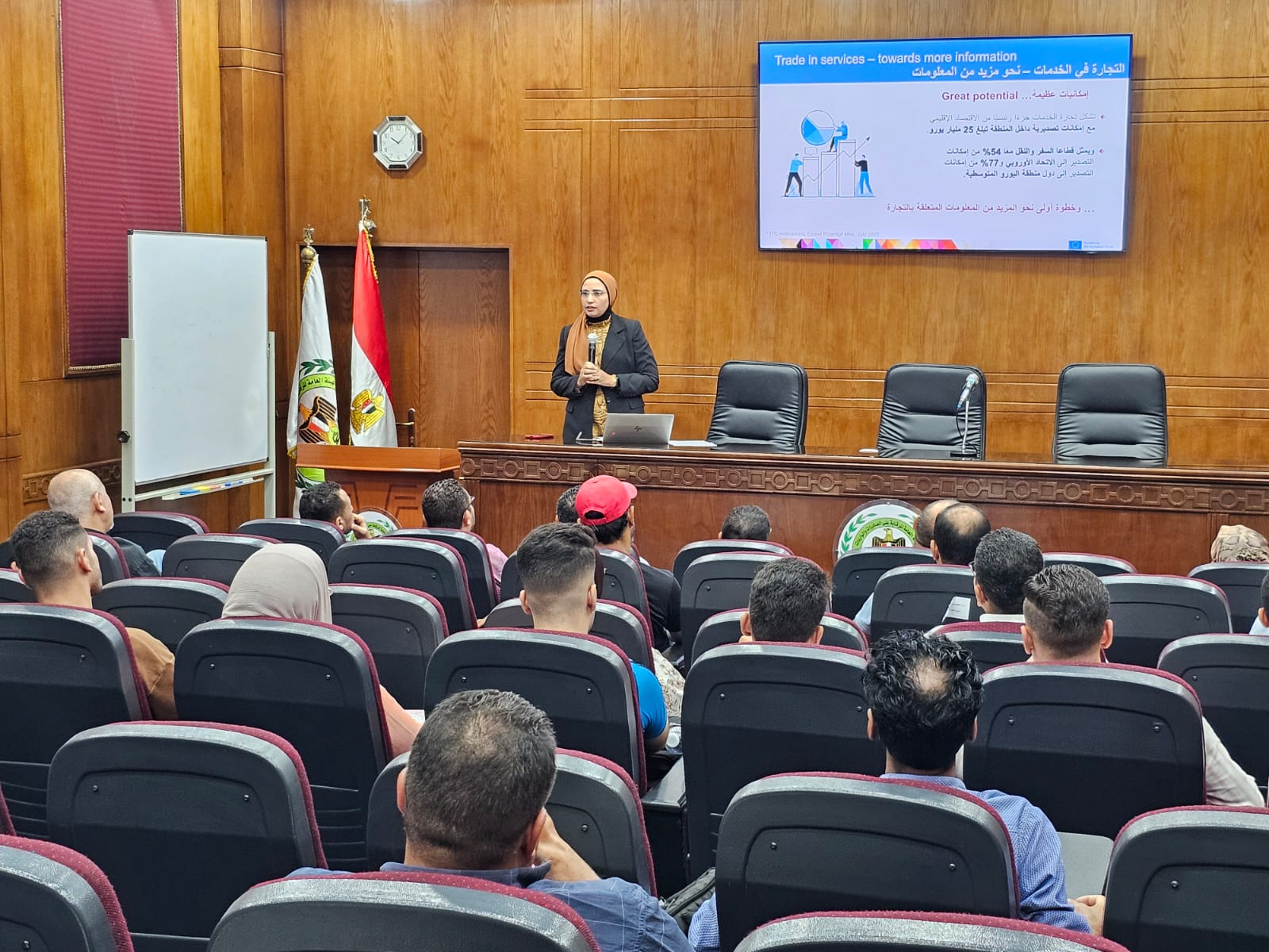 وقدمت الدكتورة مى زكى حسن الجابرى - باحث اتفاقيات تجارية وتحقق الهيئة العامة للرقابة على الصادرات والواردات والاستاذ مساعد بكلية سياسة واقتصاد جامعة السويس ورشه العمل.