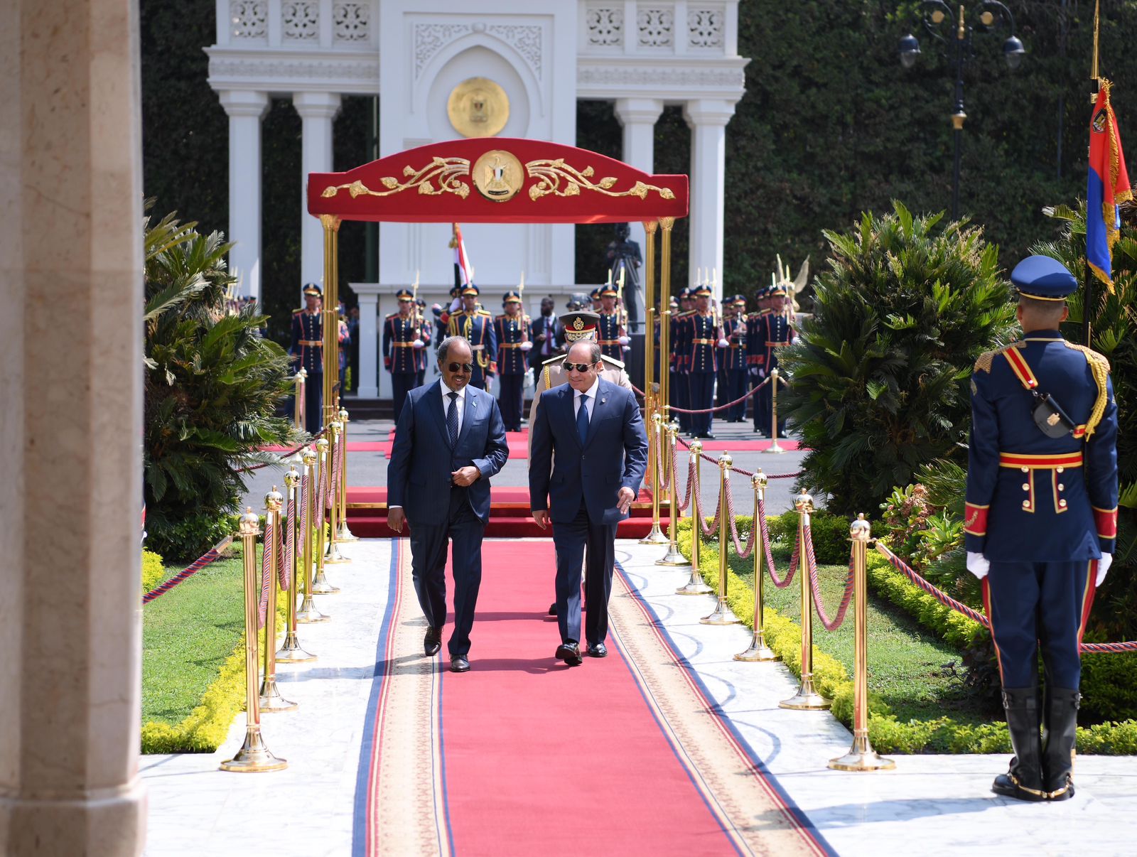 استقبل الرئيس عبد الفتاح السيسي، اليوم بقصر الاتحادية، رئيس جمهورية الصومال، د. حسن شيخ محمود، الذي يجري زيارة رسمية لمصر لعدة أيام، حيث أُجريت مراسم الاستقبال الرسمي وتم عزف السلامين الوطنيين.