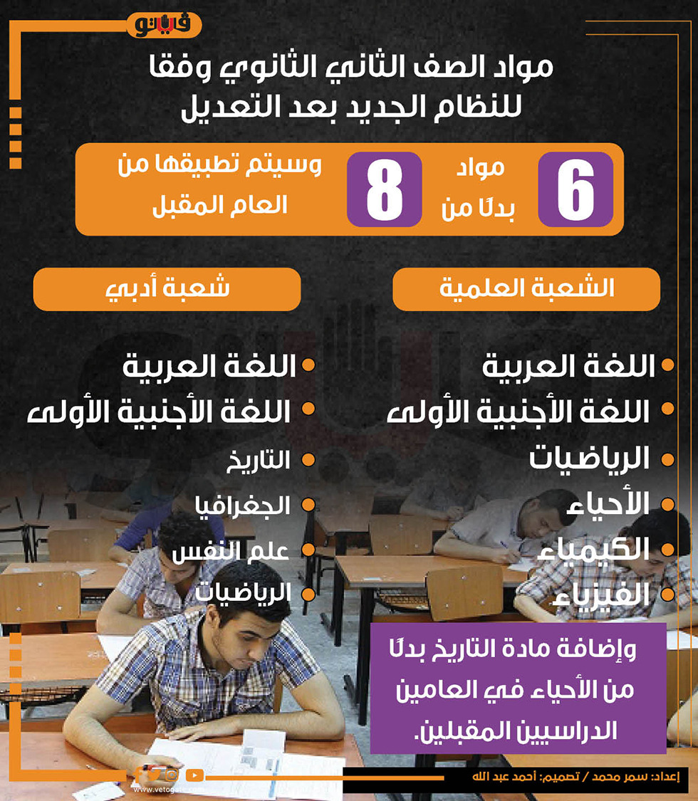 مواد الصف الثاني الثانوي وفقا للنظام الجديد بعد التعديل (إنفوجراف) الأربعاء 14/أغسطس/2024 - 06:15 م 8/14/2024 6:15:18 PM طلاب الثانوية العامة سمر محمد شارك طباعة 18 حجم الخط شارك طباعة الصف الثاني الثانوي مواد الصف الثاني الثانوي الشعبة العلمية