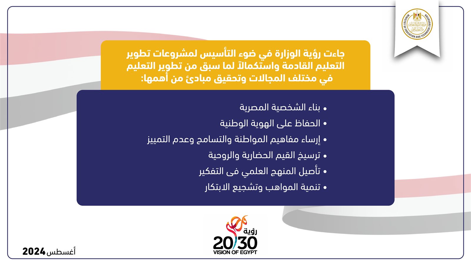 أعلن محمد عبد اللطيف وزير التربية والتعليم والتعليم الفني، عن خطة الوزارة للعام الدراسي الجديد 2024 /2025، والذي ينطلق في الحادي والعشرين من سبتمبر المقبل.