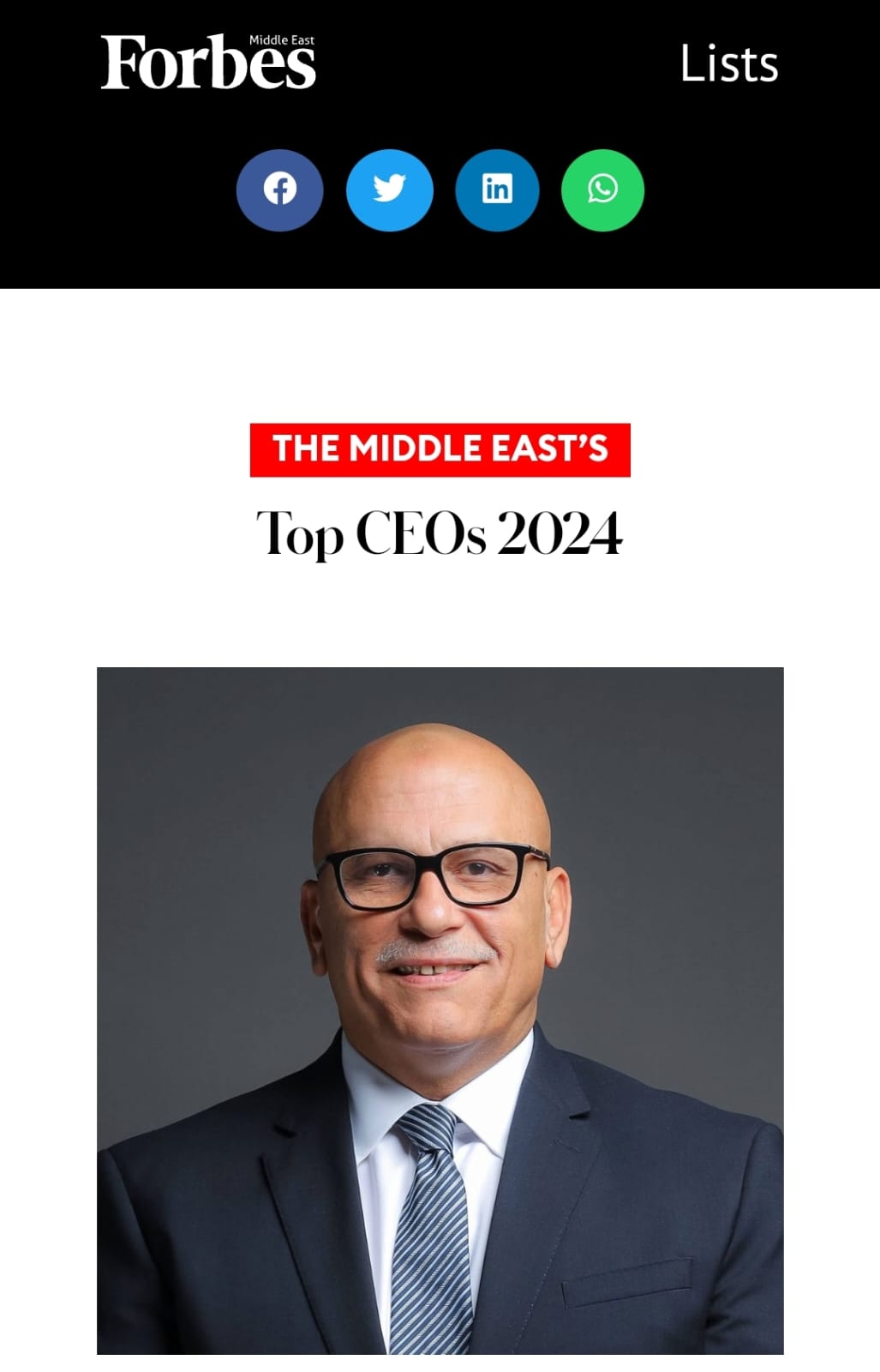 سعيد زعتر ضمن أفضل 100 رئيس تنفيذي في تصنيف فوربس الشرق الأوسط لـ 2024