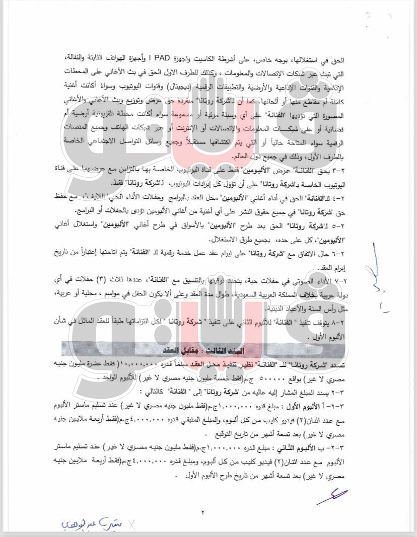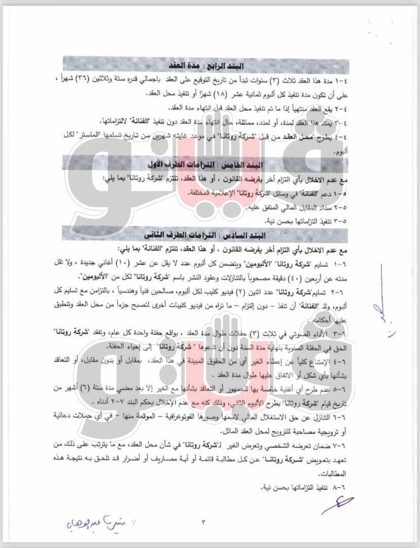 وحصلت “ڤيتو” على نسخة من العقد المبرم بين شيرين عبد الوهاب وشركة روتانا.