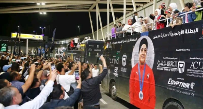 استقبل الدكتور أشرف صبحى وزير الشباب والرياضة ووفد من جهاز الرياضة للقوات المسلحة اللاعبة سارة سمير وبعثة المنتخب المصرى المشارك فى دورة الألعاب الأولمبية باريس 2024 فور وصولها إلى أرض الوطن وسط استقبال جماهيري حافل بمطار القاهرة الدولى.