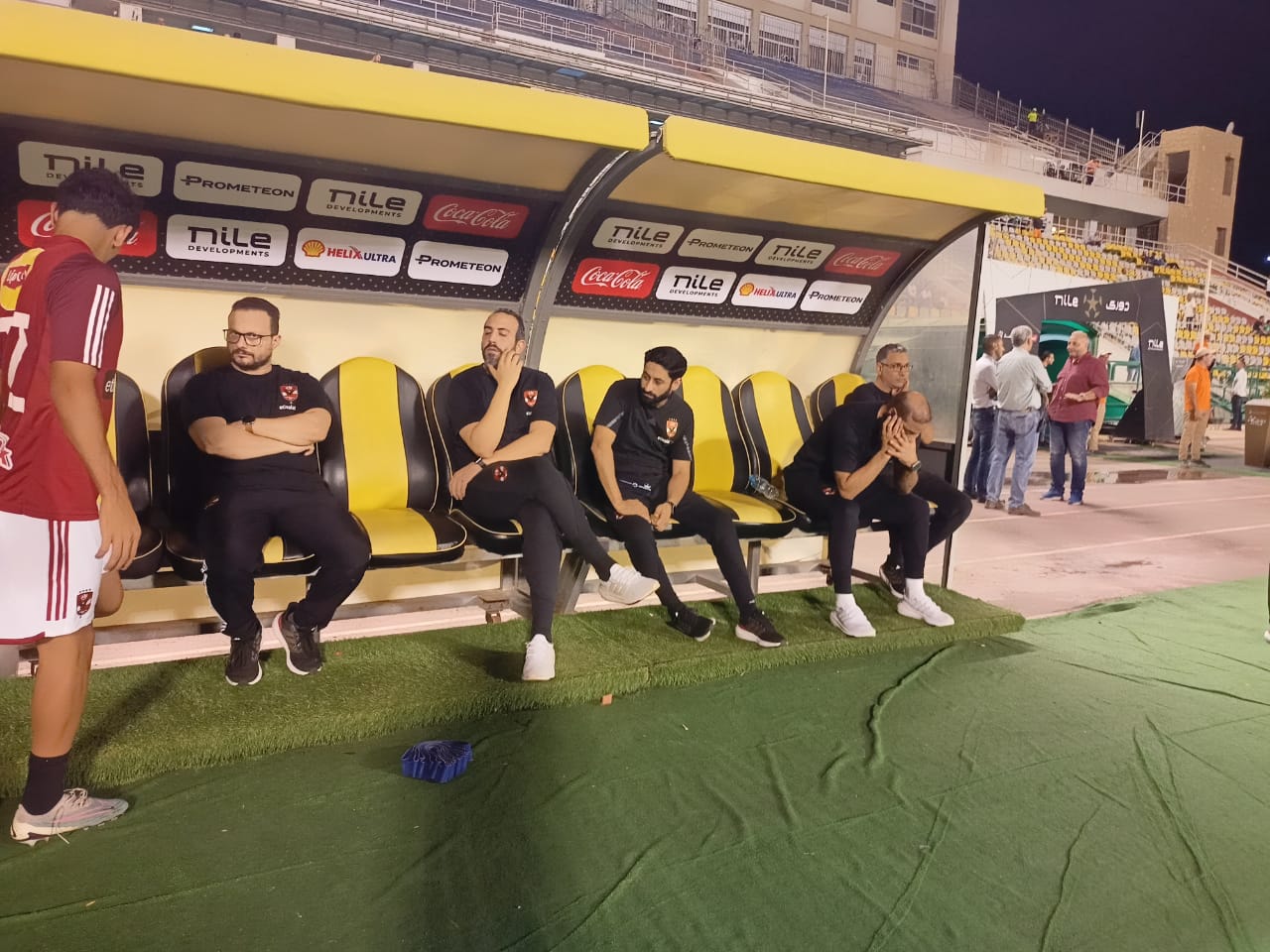 بعد أنباء إقالته، خالد بيبو يتواجد على دكة بدلاء الأهلي قبل مباراة إنبي