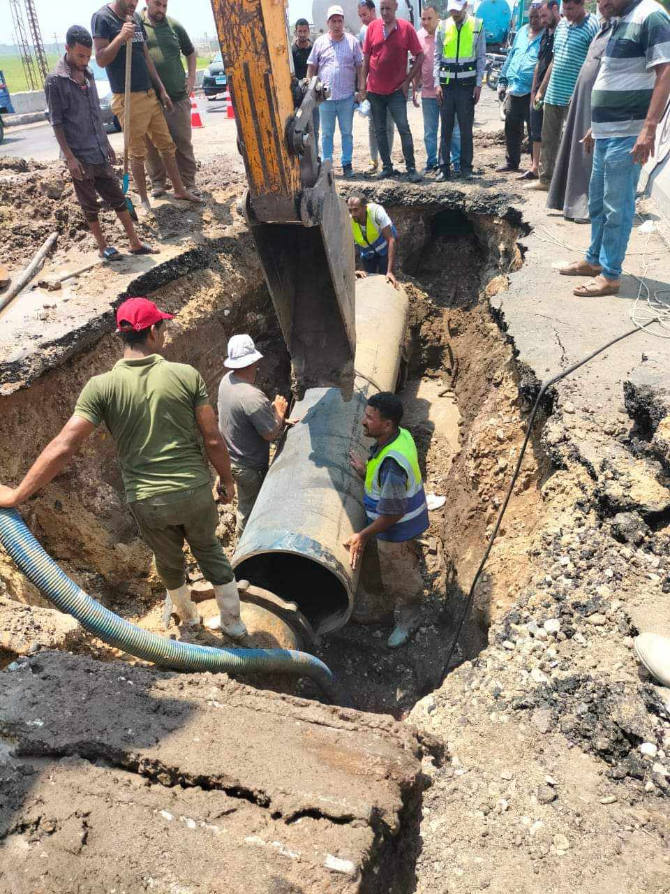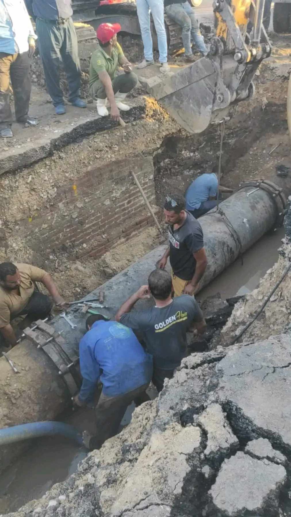 بعد عمل شاق استغرق 12 ساعة.. رئيس مياه الشرقية يعلن الانتهاء من إصلاح كسر خط مياه الزقازيق وانتظام وصول المياه للمواطنين.