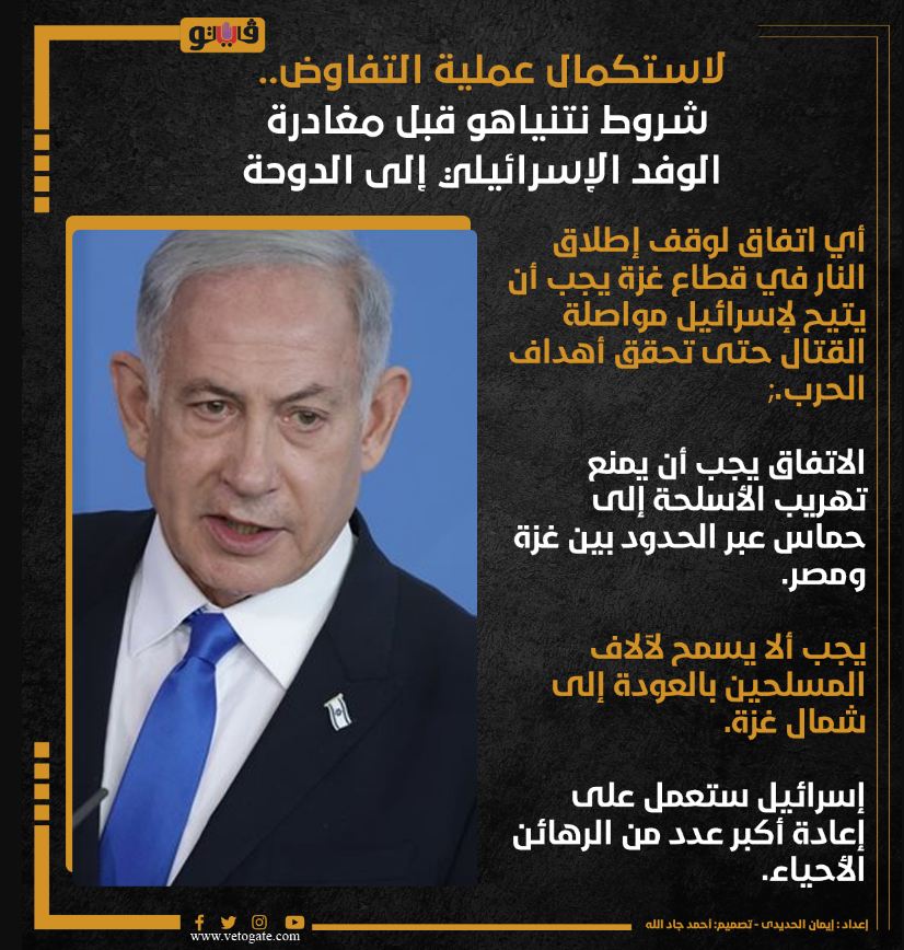 شروط نتنياهو التعجيزية قبل انطلاق مفاوضات الدوحة