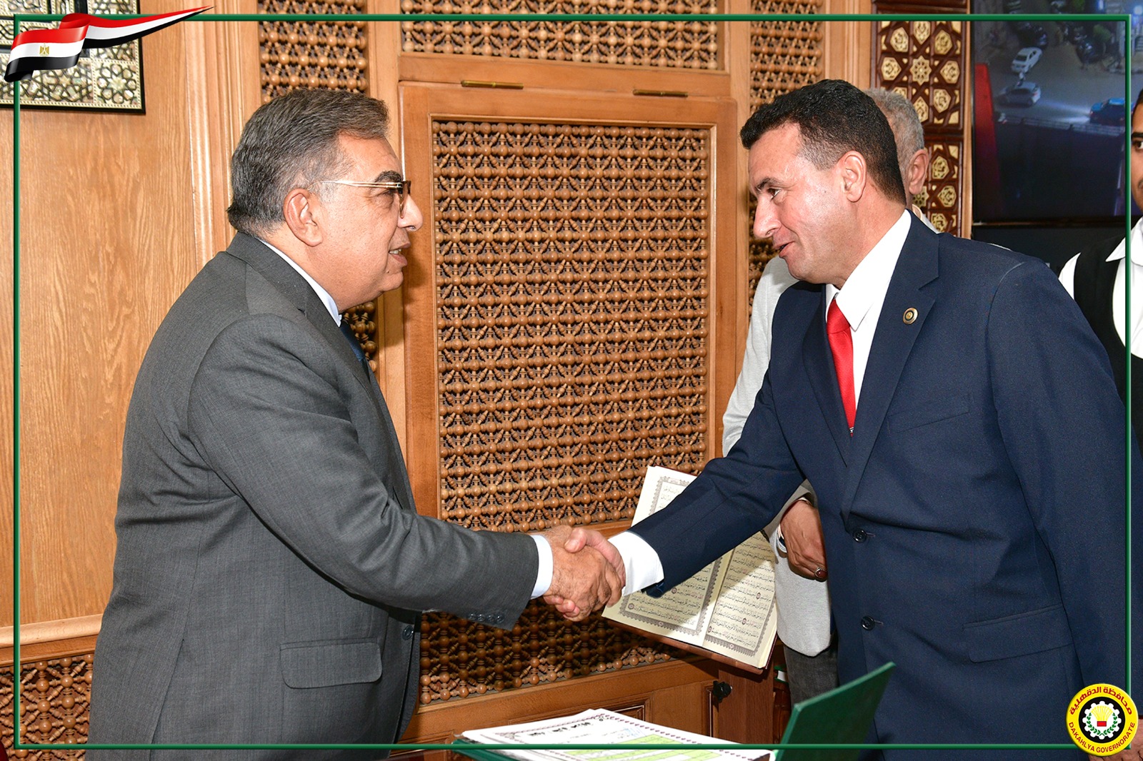 محافظ الدقهلية يستقبل السكرتيرين العام والمساعد الجديدين في أول يوم عمل لهما