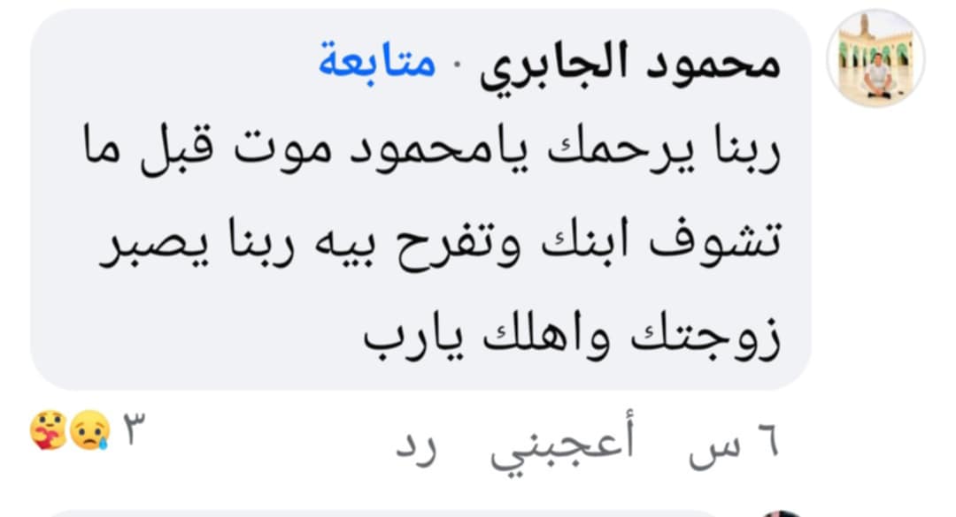 وتحول موقع التواصل الاجتماعي فيس بوك إلى ساحة عزاء حزينة على رحيل محمود، الذي كان معروفًا بحسن الخلق وعلاقاته الطيبة مع الجميع.