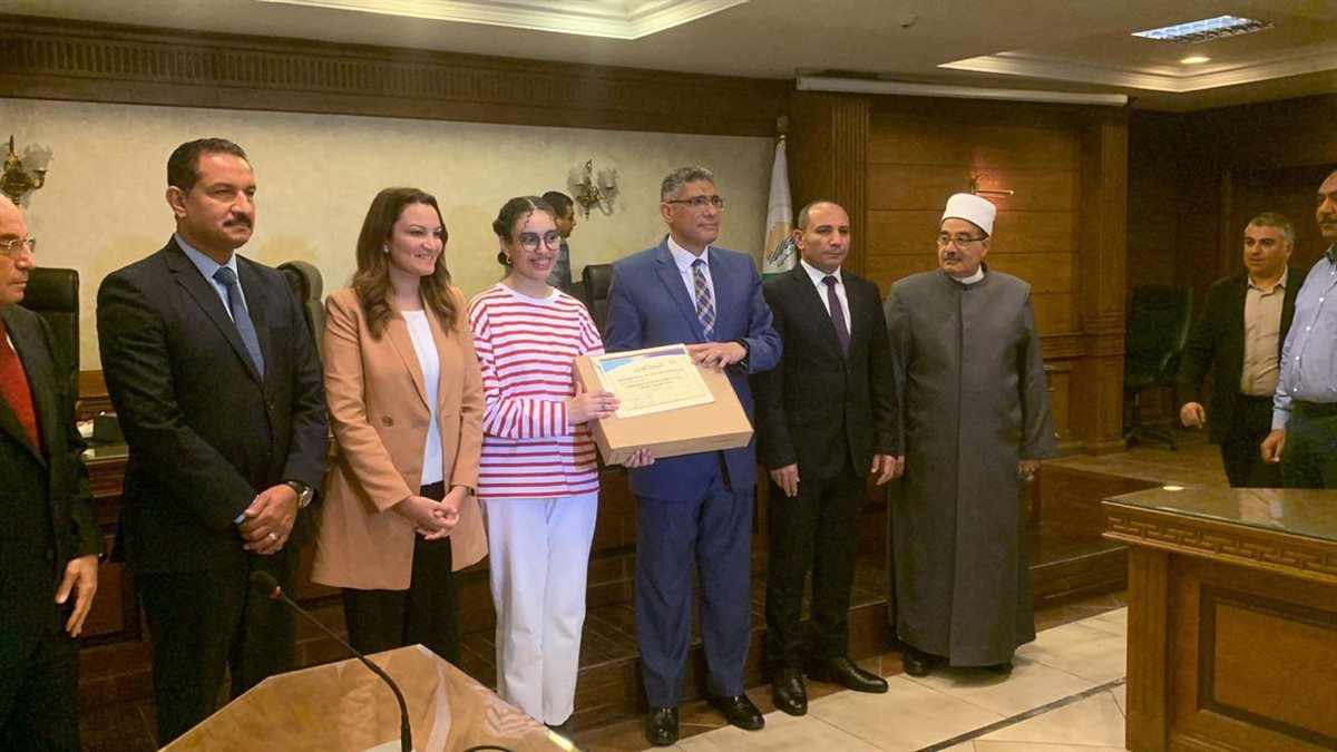 وكان المهندس عادل النجار محافظ الجيزة هنأ الطالبة ملك علي السيد بيومي إبراهيم الحاصلة على المركز الأول مكرر في الشعبة الأدبية المقيدة بمدرسة الأورمان الثانوية بنات التابعة لإدارة العجوزة التعليمية ضمن أوائل الثانوية العامة للعام الدراسي ٢٠٢٣ / ٢٠٢٤ .
