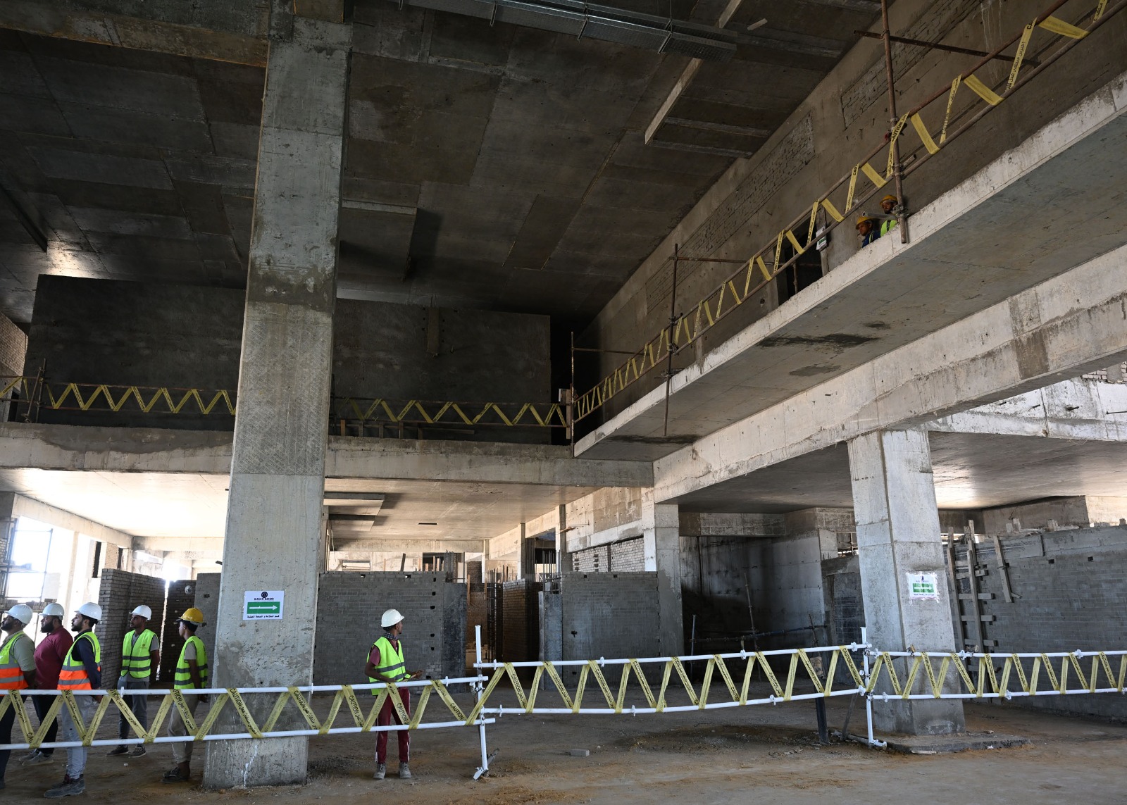 توجه الدكتور مصطفى مدبولي، رئيس مجلس الوزراء، ومرافقوه، لتفقد أعمال إنشاء محطة رأس الحكمة التى يتم تنفيذها ضمن مشروع الخط الأول من شبكة القطار الكهربائي السريع، حيث كان فى استقبالهم مسئولو وزارة النقل.