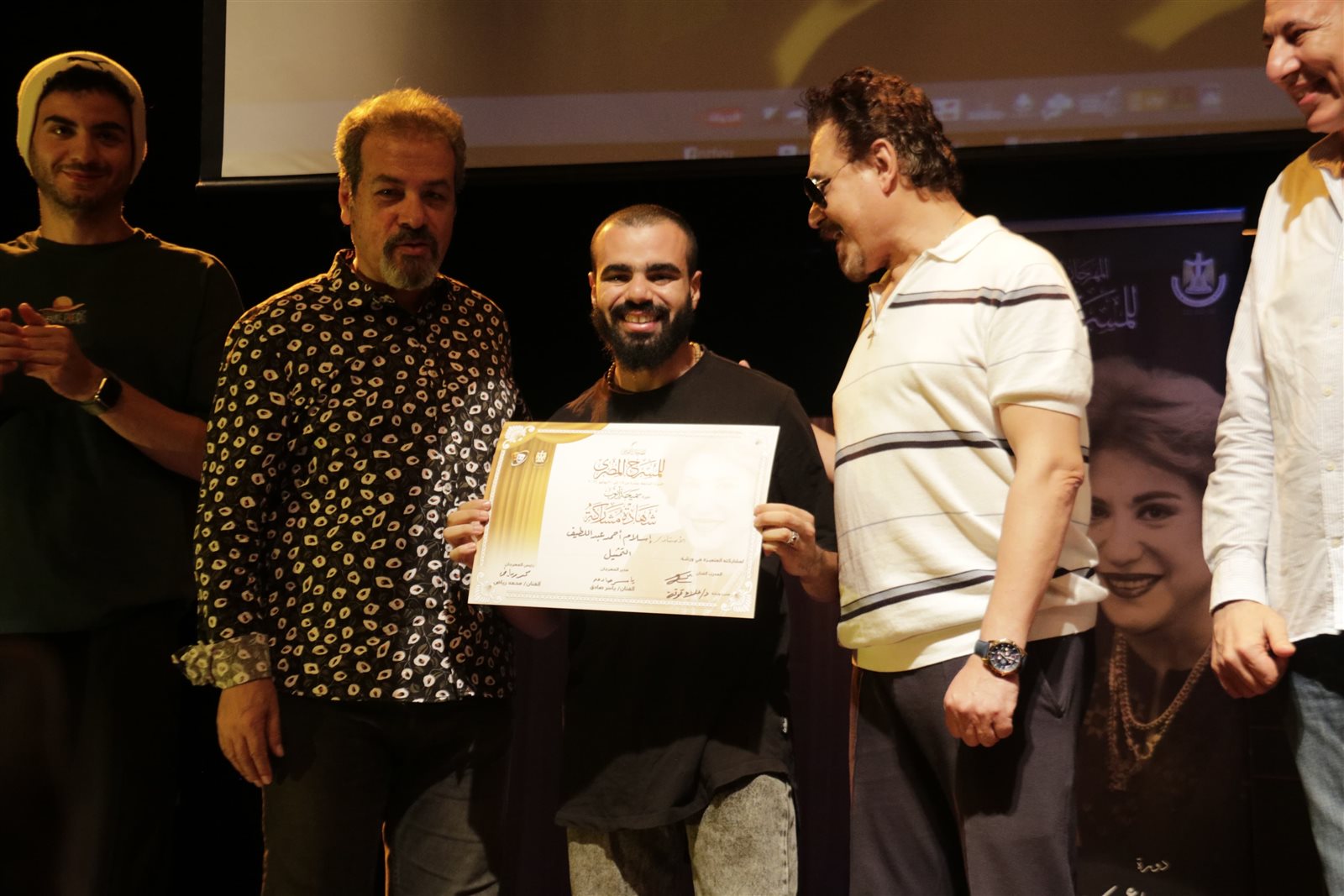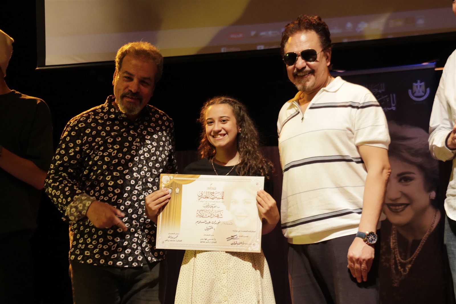منح الفنان محمد رياض رئيس المهرجان القومي للمسرح المصري، شهادات مشاركة لكل الشباب المشاركين في ورشة التمثيل التي قدمها الدكتور علاء قوقة، خلال الدورة السابعة عشرة "دورة سميحة أيوب".