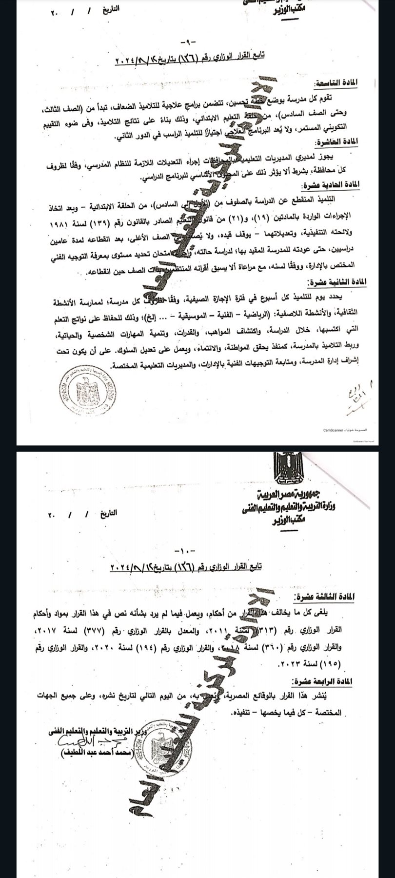 أصدرت وزارة التربية والتعليم والتعليم الفني، قرارا مهما وعاجلا برئاسة محمد عبد اللطيف وزير التربية والتعليم والتعليم الفني، بشأن نظام الدراسة والتقييم لتلاميذ الحلقة الابتدائية بمرحلة التعليم الأساسي.