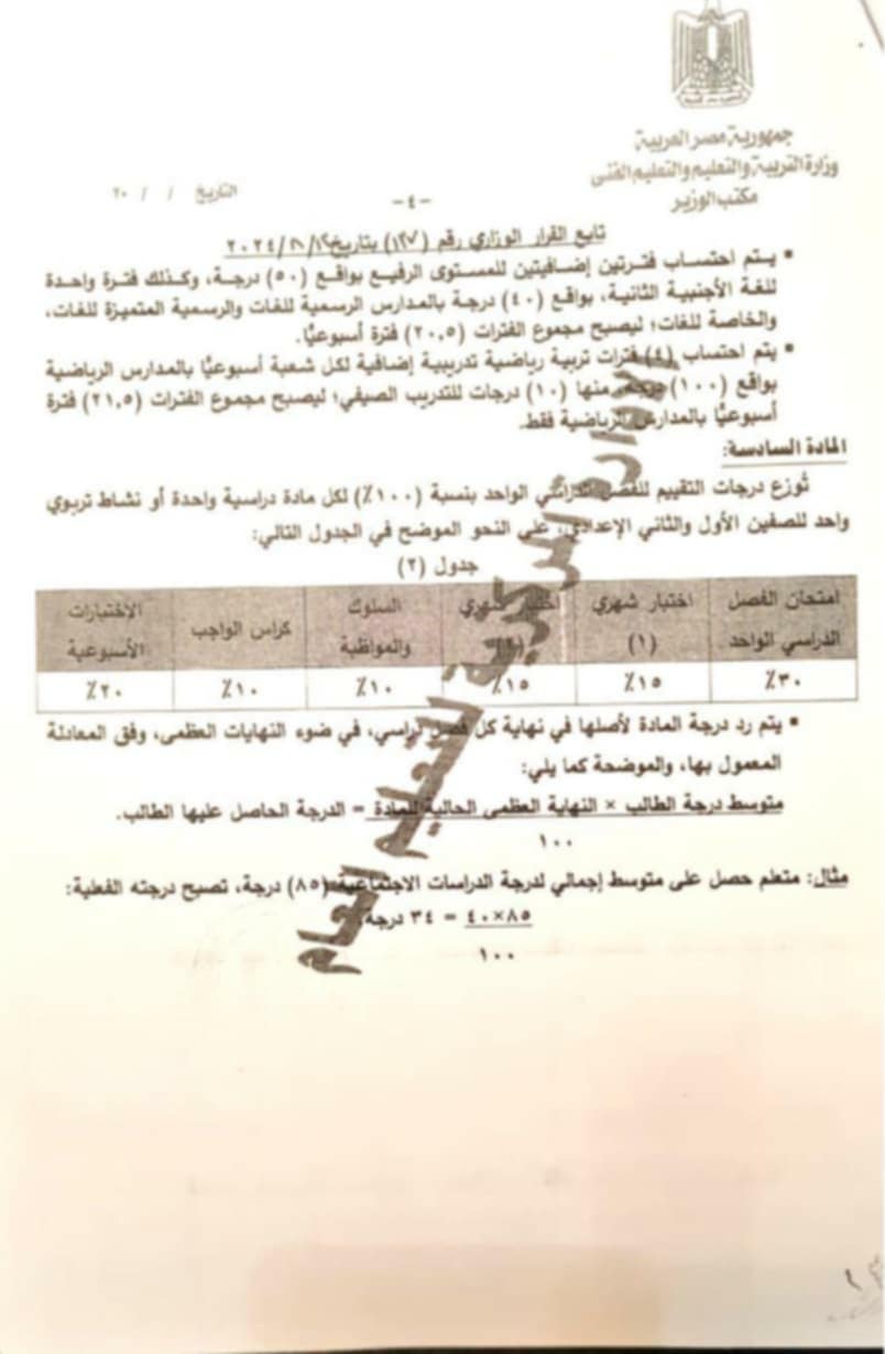المواد غير المضافة للمجموع في 3 اعدادي: التربية الدينية من 40.. التربية الفنية من 20.. الكمبيوتر وتكنولوجيا المعلومات من 20.