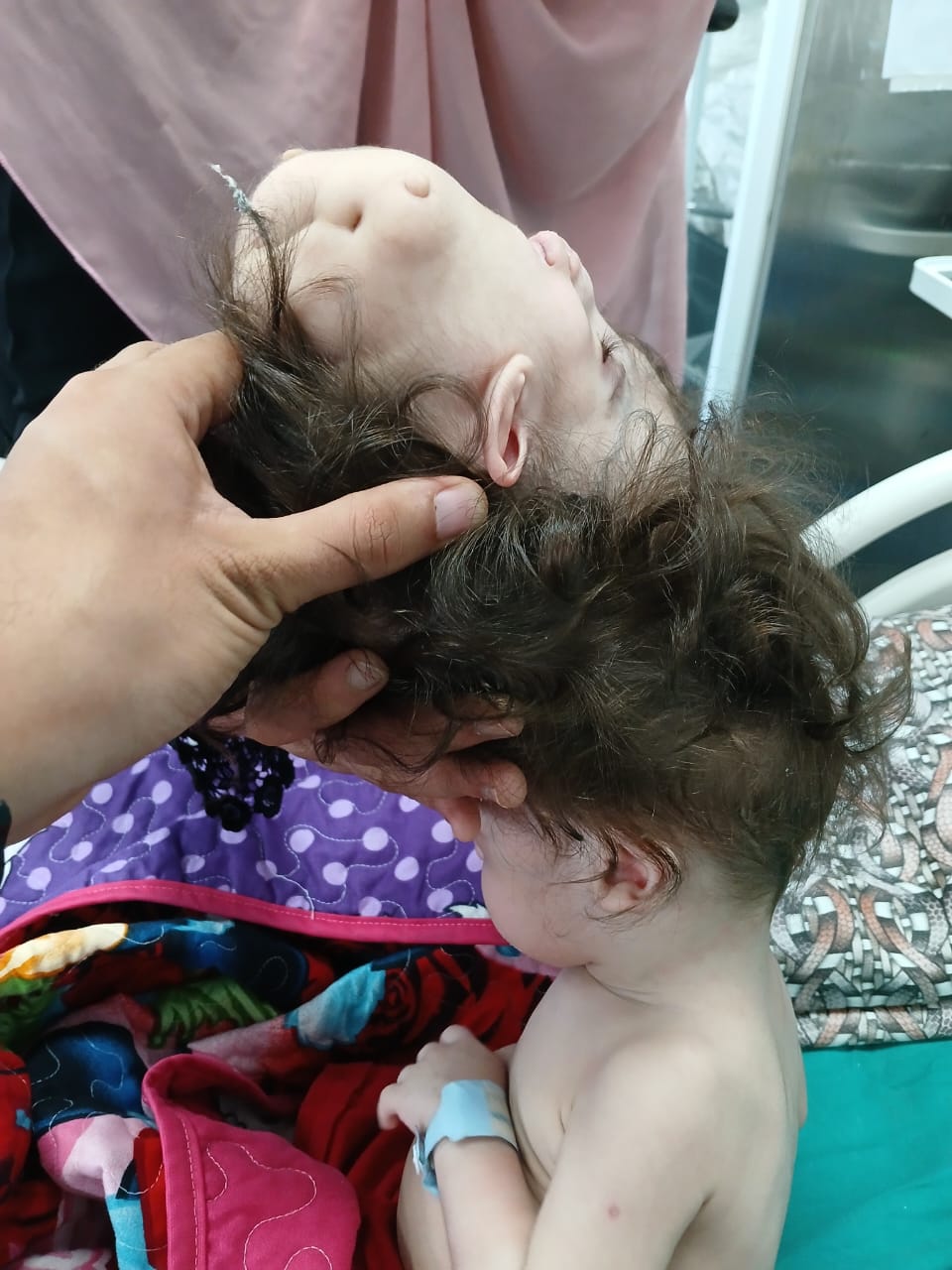 كما أكدت ندى عادل والدة التوأم، أن فى بداية حملها بالشهر السادس ومن خلال متابعة دقيقة مع الأطباء المتخصصين والمراكز الطبية لحالتها قبل الولادة اكتشفت بوجود توامان متلاصقان فى الرأس والمخ، مضيفة أن عقب ولادة الطفلين المتلاصقين بأحد مستشفيات دمنهور فوجئت بوجود تلاصق فى الرأس والمخ مع آخر دون أطراف أو جسد.