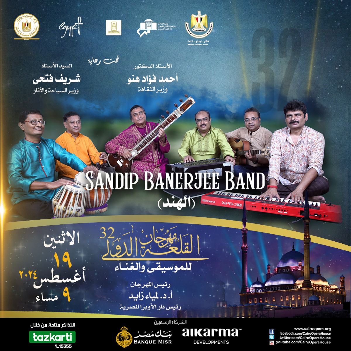وفى التاسعة وبالتعاون مع العلاقات الثقافية الخارجية تقدم فرقة سانديب بانيرجى الهندية حفلا يضم موسيقى وأغانى فلكلورية شعبية هندية وأغاني بوليووود بالإضافة إلى مزيج من المقطوعات الغربية والكلاسيكيات الهندية.