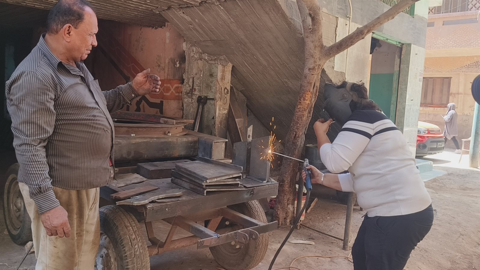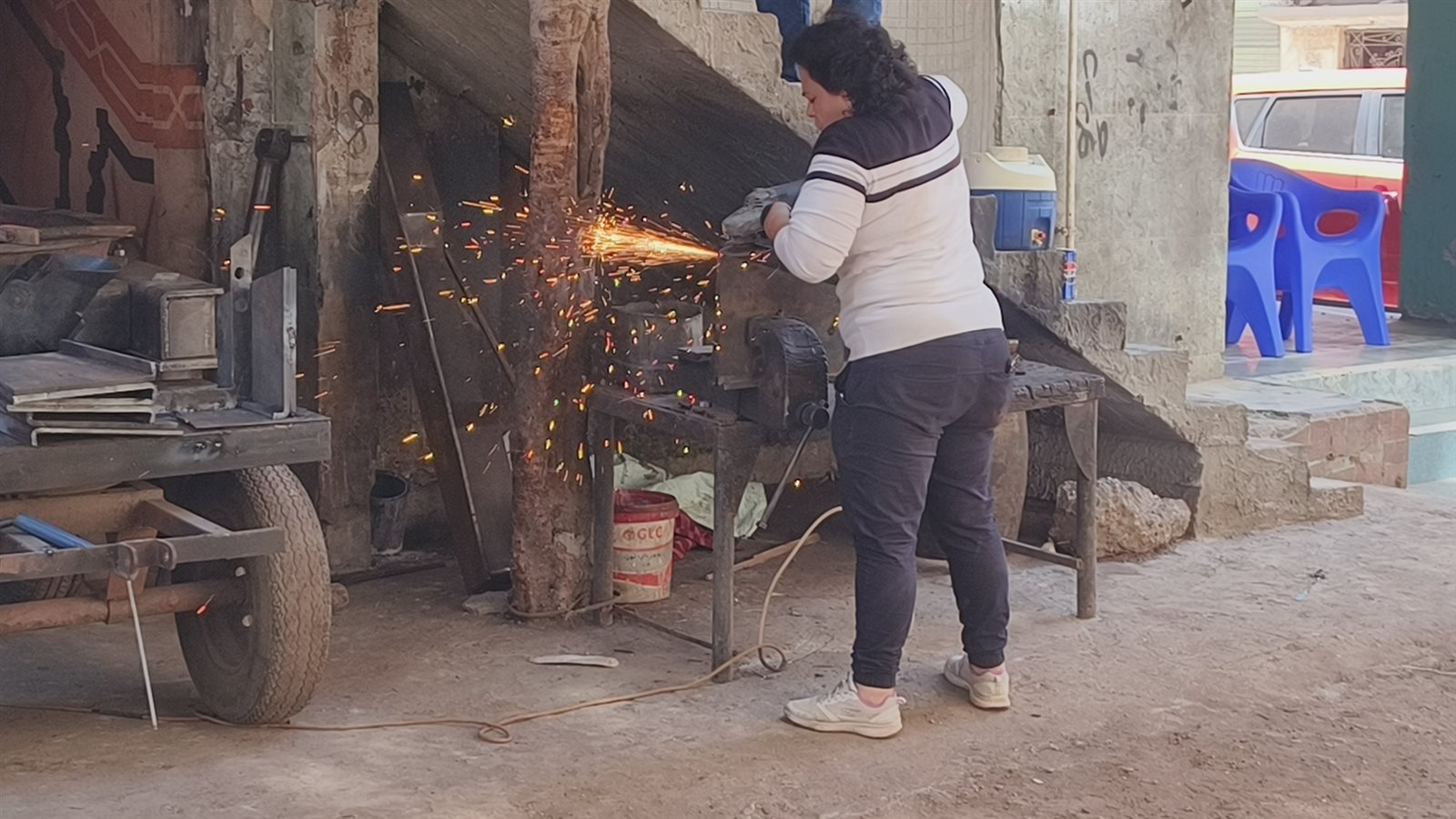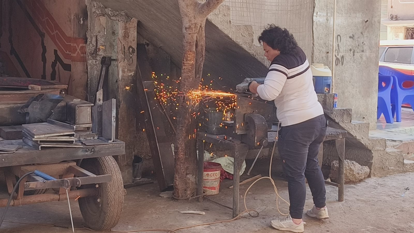 تعد نسرين عبدالعزيز بنت مدينة السنبلاوين بمحافظة الدقهلية من أشهر الحدادين أصحاب الخبرة التي تتجاوز الـ 20 عاما حدادة وخراطة.