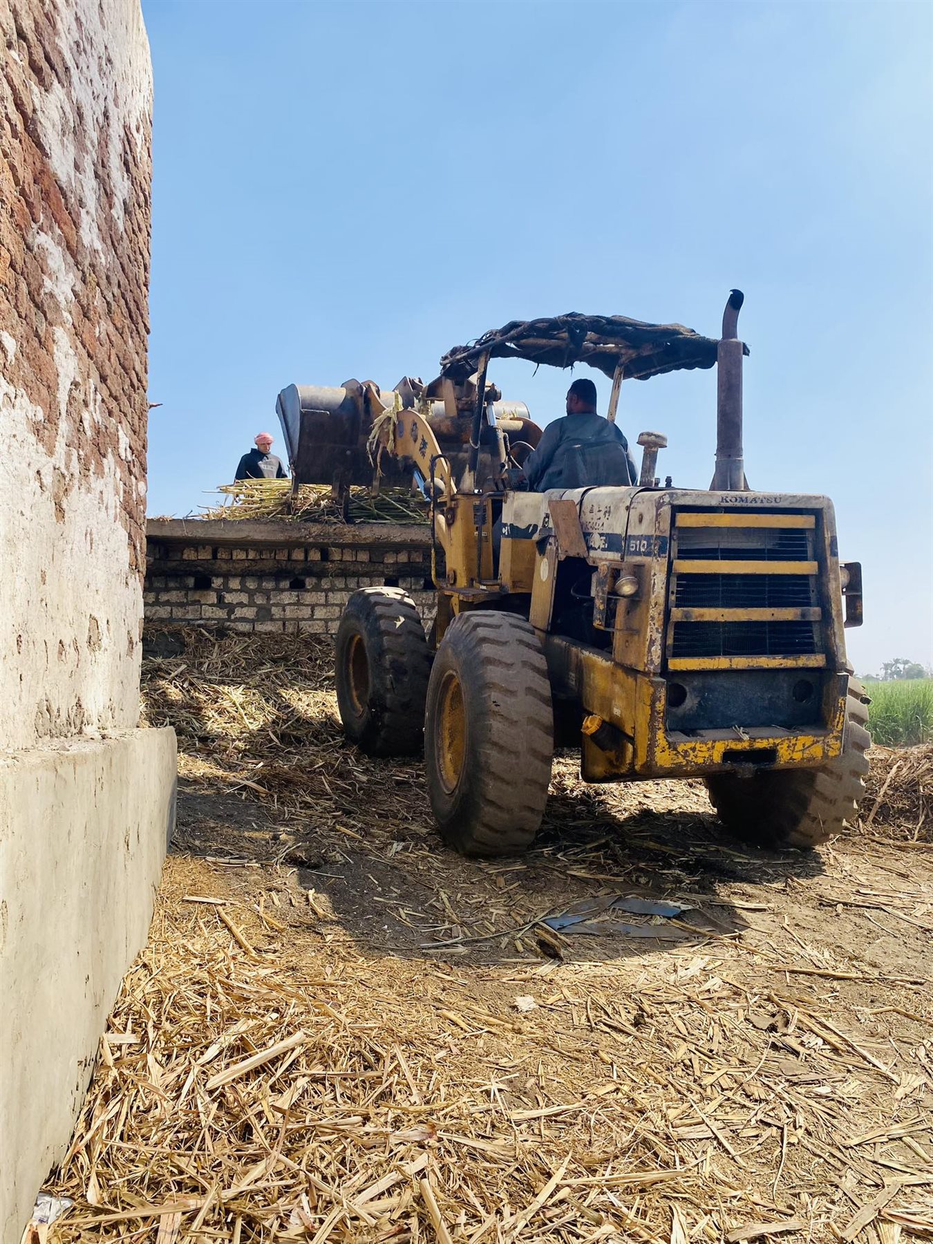 قبل بدء عملية العصر، يتم تخزين كميات كبيرة من قصب السكر في مساحات واسعة أمام العصارات. يتم رفع القصب إلى فوهة العصارة بواسطة لوادر خاصة، حيث يصل ارتفاع العصارة إلى حوالي 5 أمتار، مما يعكس حجم الإنتاجية الكبيرة التي يمكن تحقيقها في هذه المرحلة.