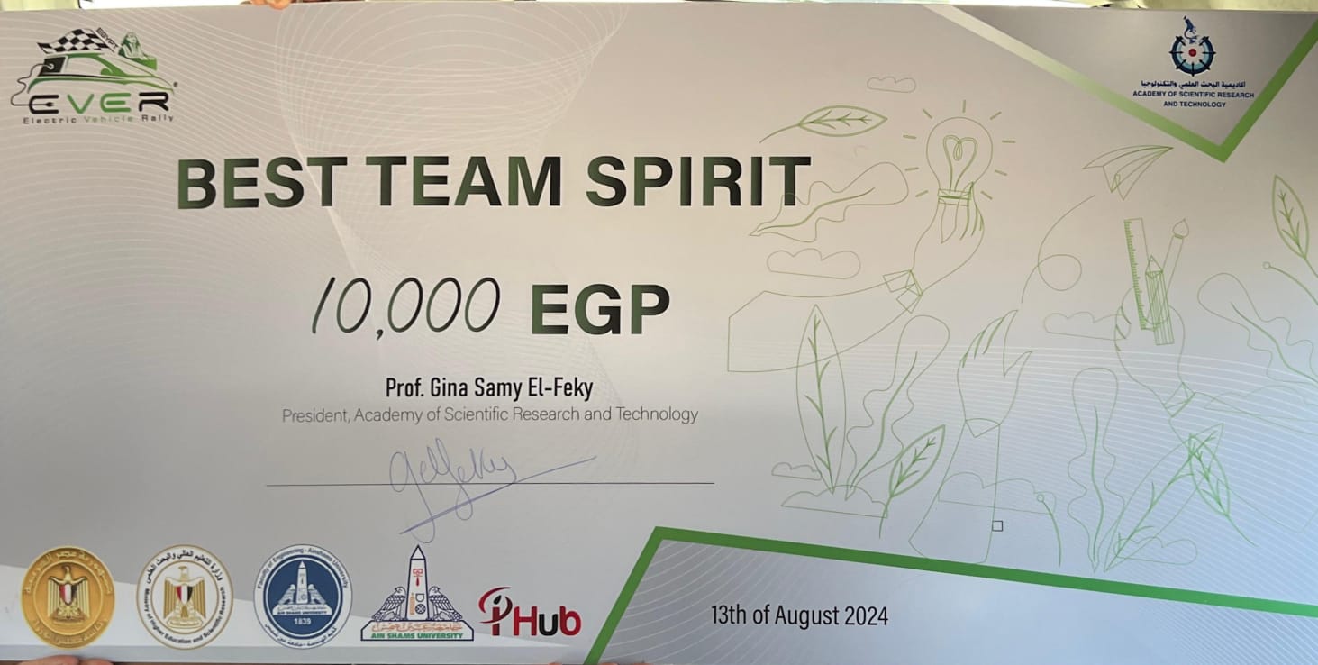 هندسة القناة تفوز بجائزة أفضل روح فريق بـ رالي السيارات الكهربائية في العلمين