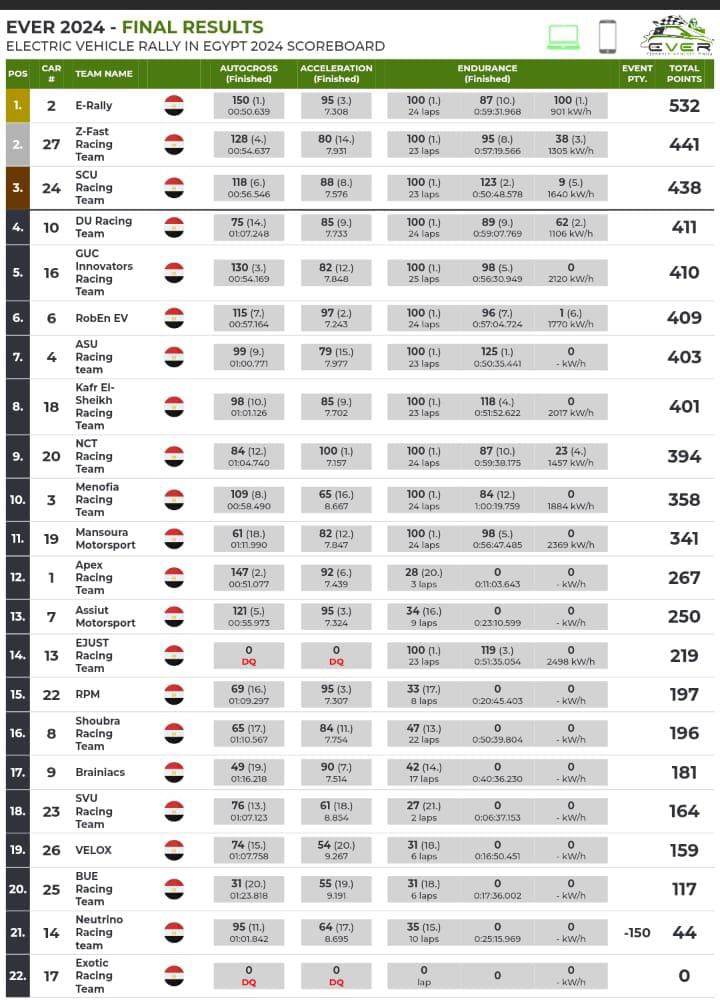 حصلت كلية الهندسة بـجامعة قناة السويس على جائزة "أفضل روح فريق" كما حصدت المركز الثالث بجميع الفئات في مسابقة رالي السيارات الكهربائية التي أقيمت في مهرجان العلمين 2024، بمشاركة 43 فريقًا من 28 جامعة مصرية.