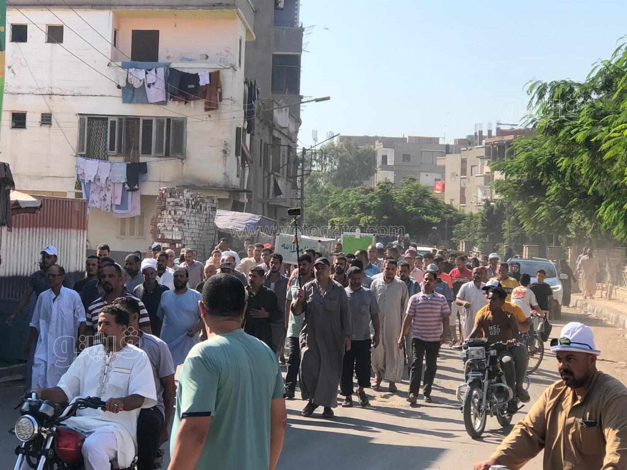 واتشحت القرية بالسواد على شهيدي لقمة العيش، وخرج جثمانيهما من مسجد الشوادي ببنى عبيد.