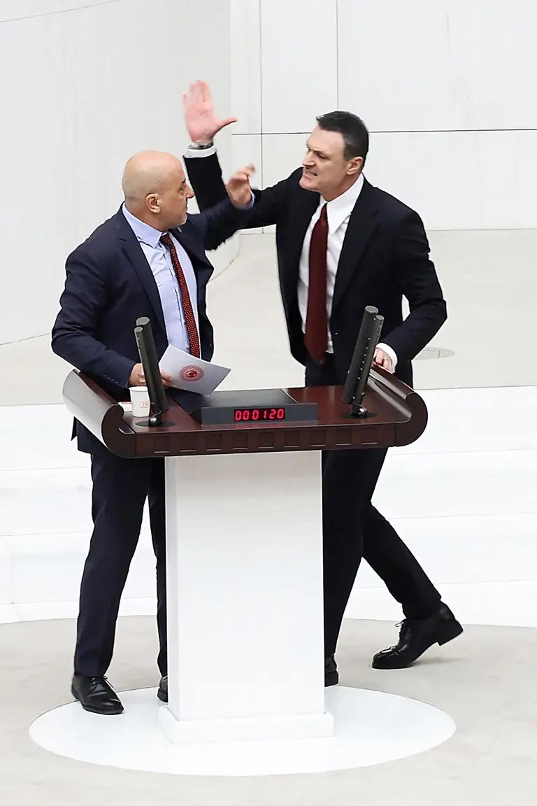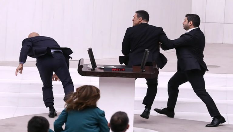 اندلع الشجار عندما قام النائب ألباي أوزالان عن حزب العدالة والتنمية الحاكم بتوجيه لكمة إلى النائب المعارض أحمد سيك، بينما كان الأخير ينتقد الحكومة بشأن النائب المعتقل جان أتالاي، حسب فرانس برس.