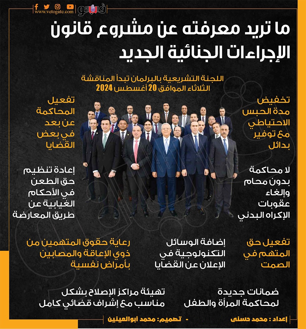 ما تريد معرفته عن مشروع قانون الإجراءات الجنائية الجديد (إنفوجراف) السبت 17/أغسطس/2024 - 03:10 م 8/17/2024 3:10:40 PM محمد حسنى شارك طباعة 18 حجم الخط شارك طباعة