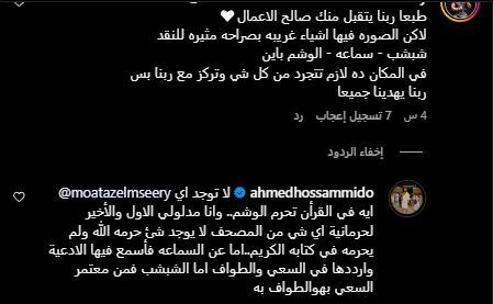 ورد أحمد حسام ميدو على منتقديه قائلا: "لا توجد أي آية في القرآن الكريم تحرم الوشم، وأنا مدلولي الأول والأخير لحرمانية أي شيء من المصحف، لا يوجد شيء حرمه الله ولم يحرمه في كتابه الكريم".